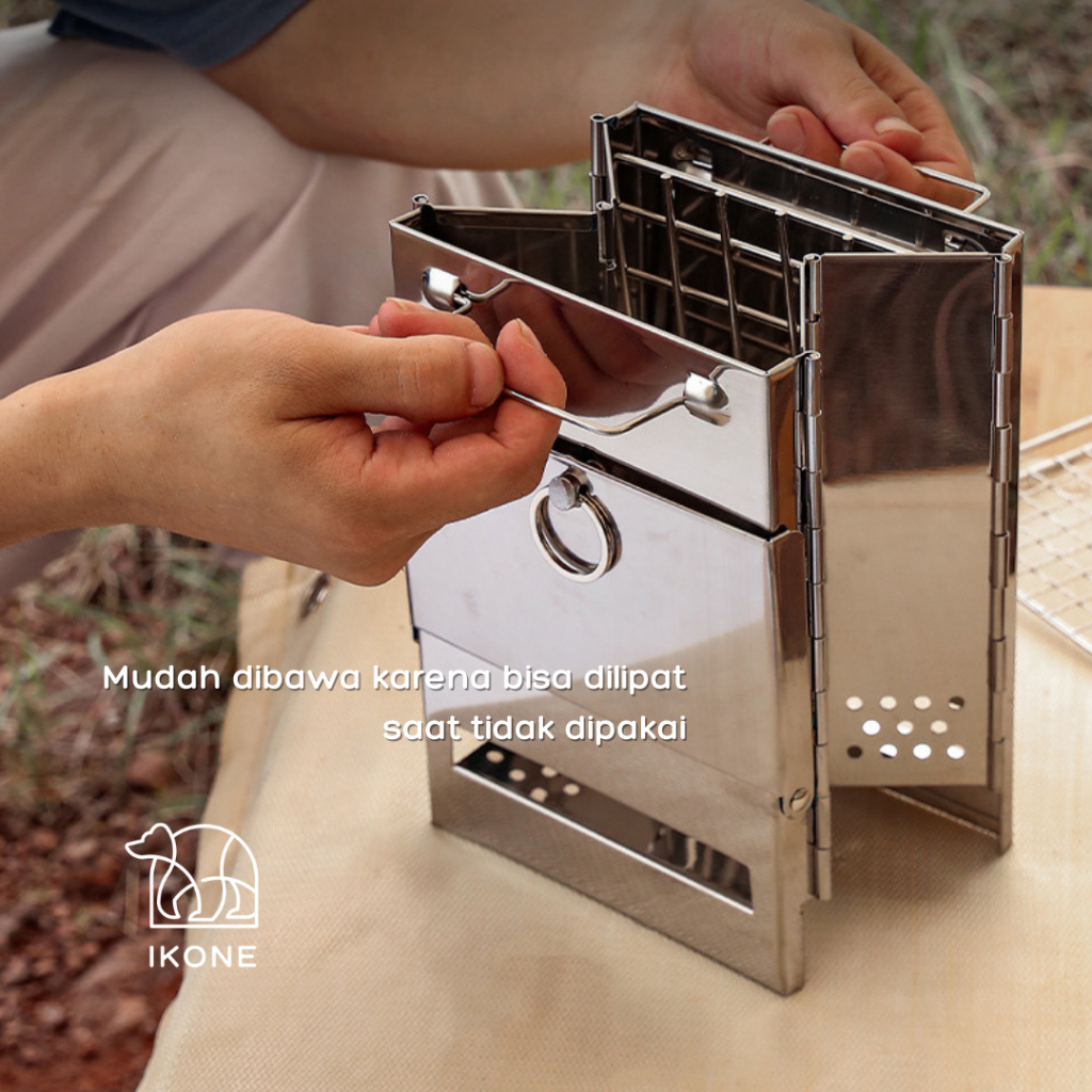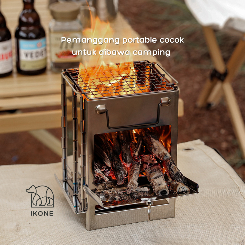【IKONE】GRILL Alat Panggang Camping Kompor Portable Outdoor Mini Firewood Stove Tungku Pembakaran
