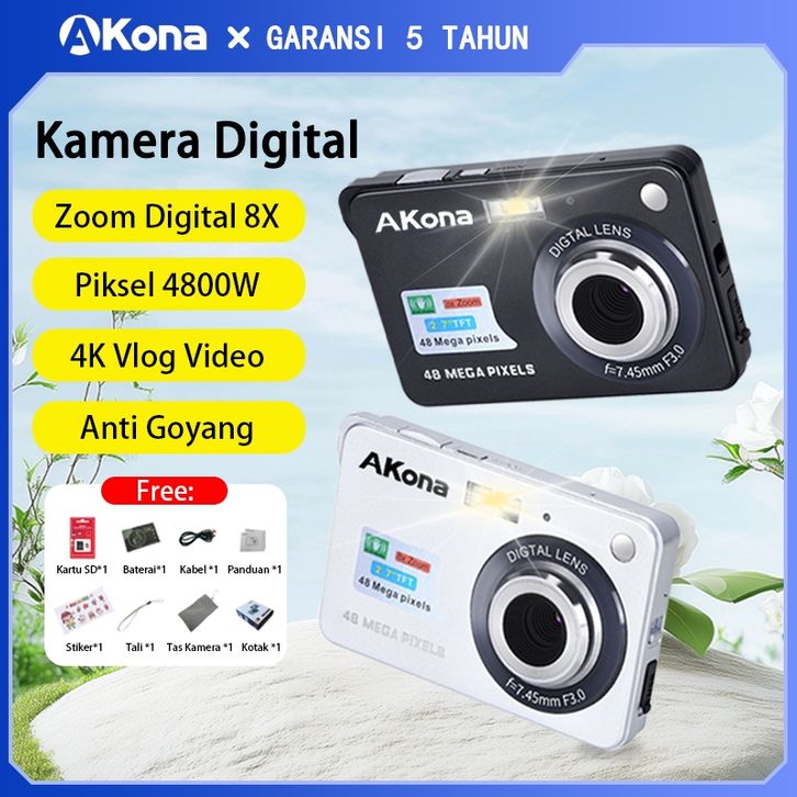 [Star] ( GRATIS ONGKIR ) Akona Digicam 48MP Kamera Digital Pocket Layar LCD 2,7 Inci Digital Camera Mini Pembesaran 8X