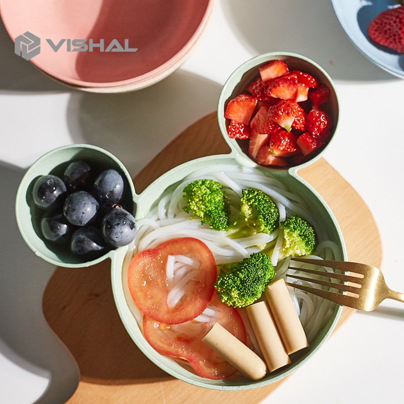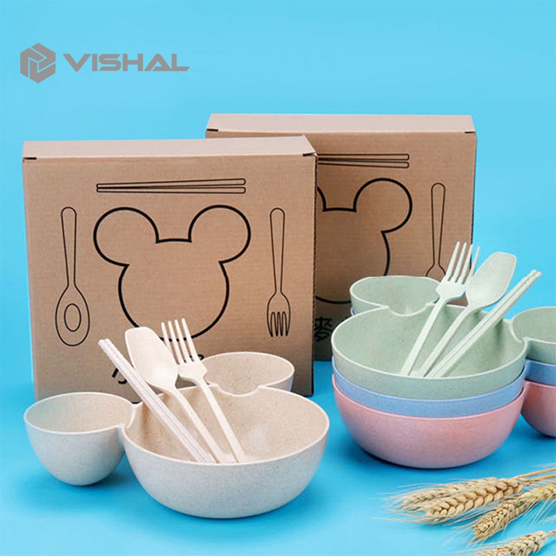 VISHAL Mangkok Set Peralatan Makan Anak 4 in1Bahan Jerami Gandum Children Tableware Piring VS-25