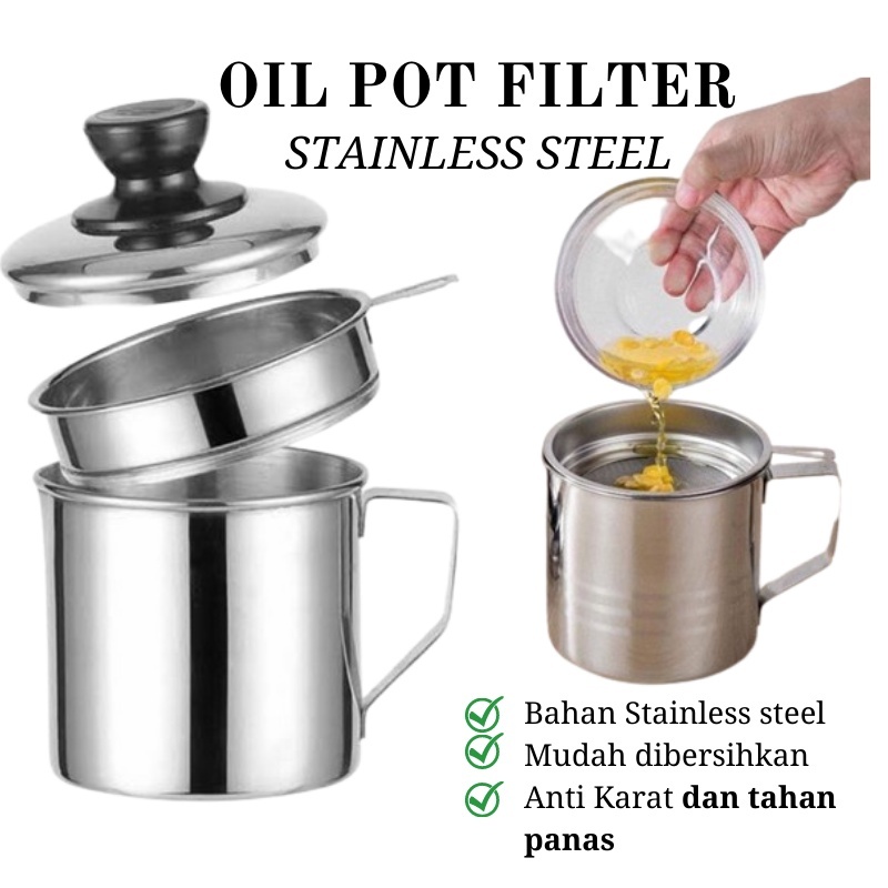 (KM) OIL POT SARINGAN STAINLESS MINYAK GORENG SISA WADAH JELANTAH 1L/1,3ML