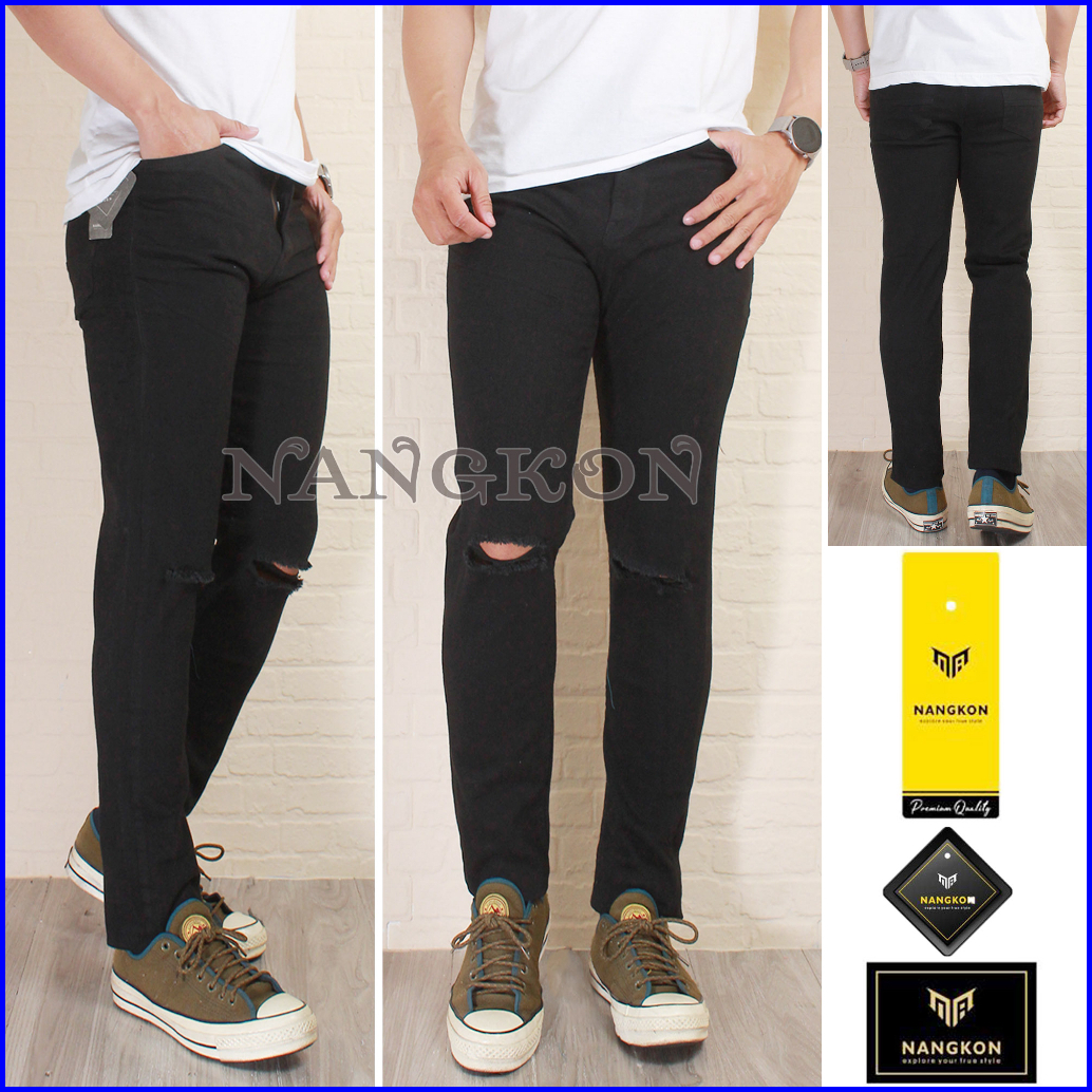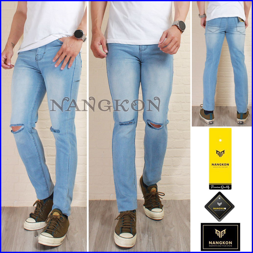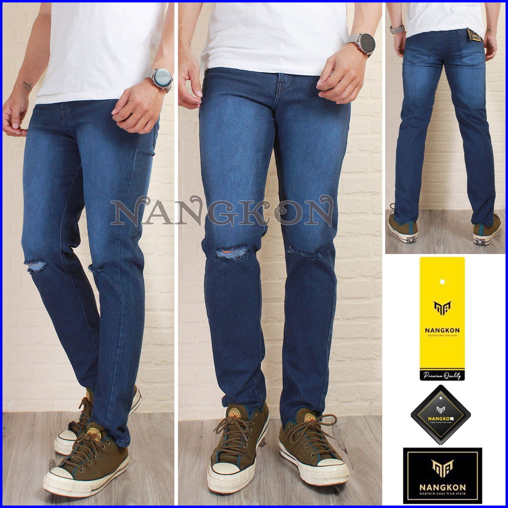 Celana Pensil Cowok Sobek Lutut Celana Jeans Pria Denim Ripped Terbaru
