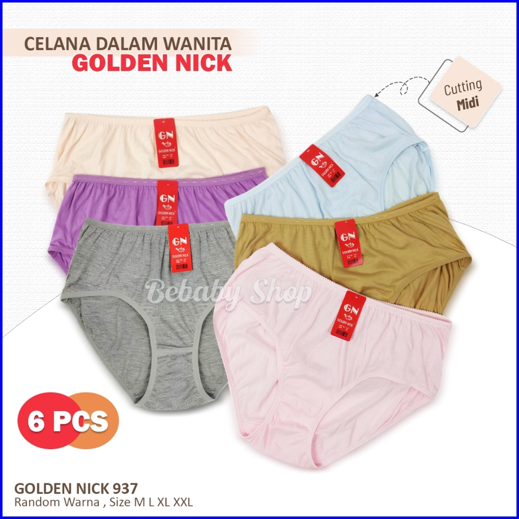 6pc Celana Dalam Wanita Basic Midi Warna Terang Cd Golden Nick 937 Muda M-xxl