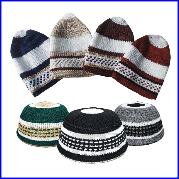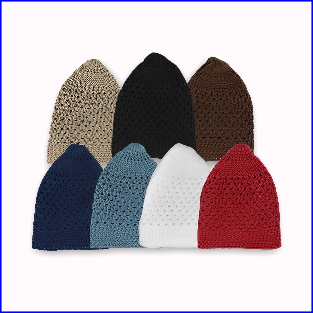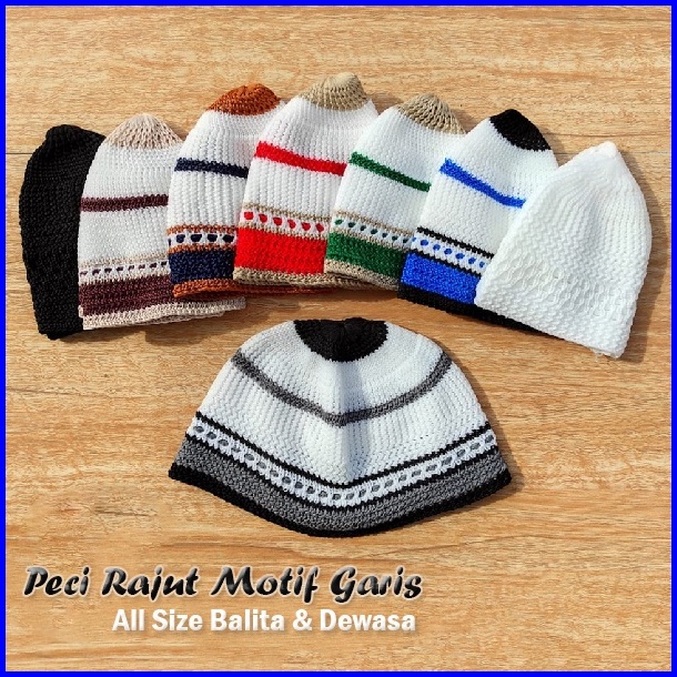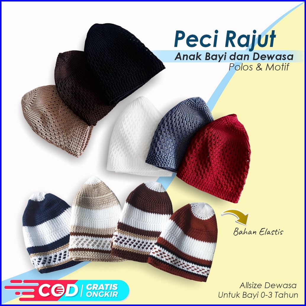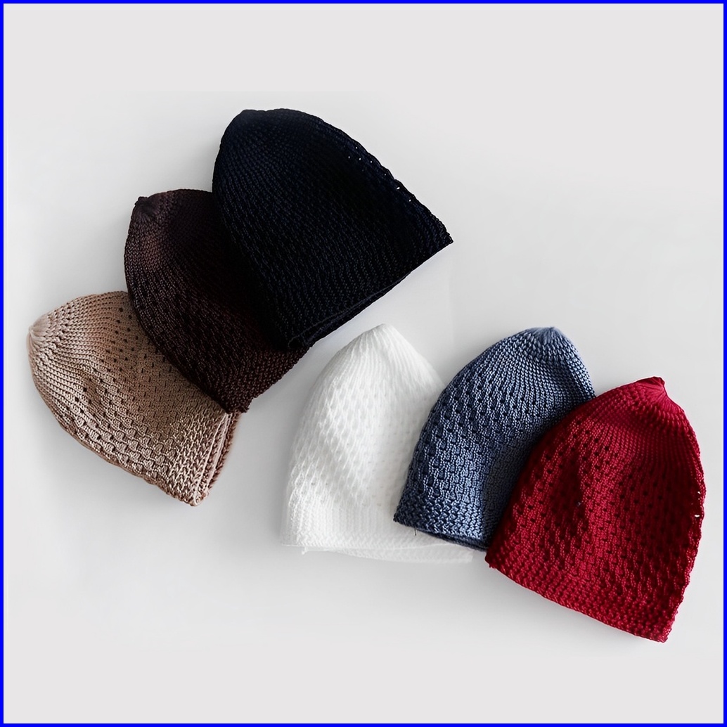 Peci Rajut Elastis Untuk Balita Dewasa Kopiah Polos Motif Putih Hitam Marun Navy Abu