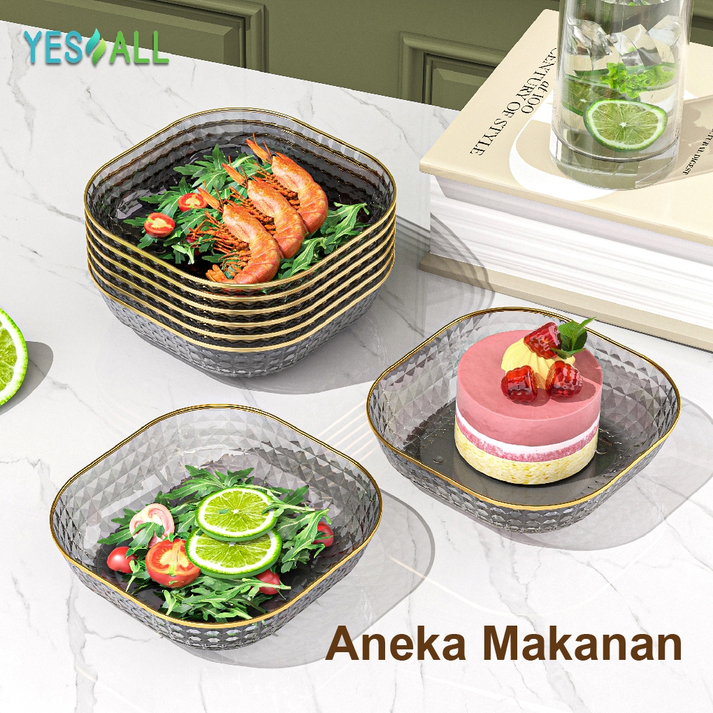 YESALL Piring Saji Mini Kotak Diamond 14,5cm - Cantik Transparan Piring Saji Kotak Lauk Pauk Buah Kue Snk Dessert Aesthe