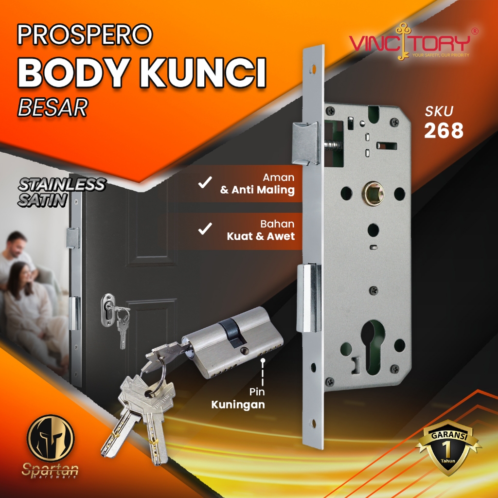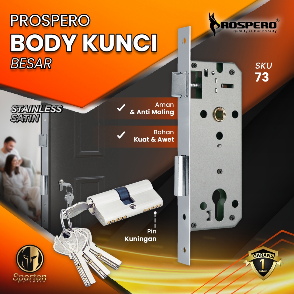 Body Kunci Pintu Rumah Besar / Silinder Kunci Pintu Set Stainless Krom Hitam Prospero