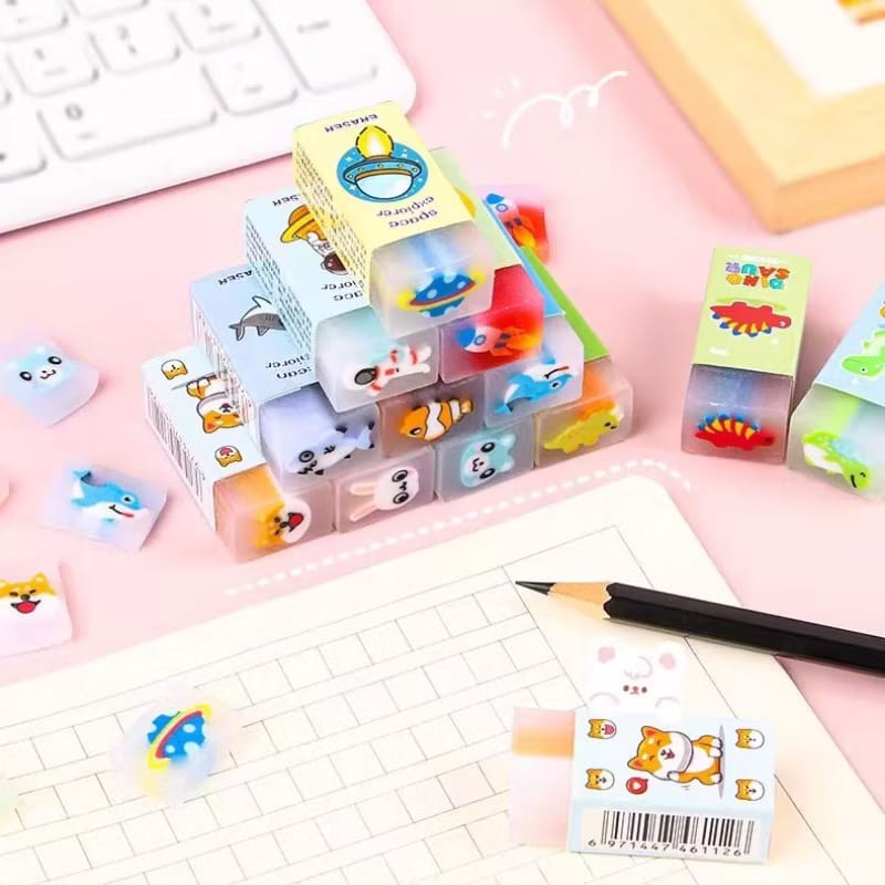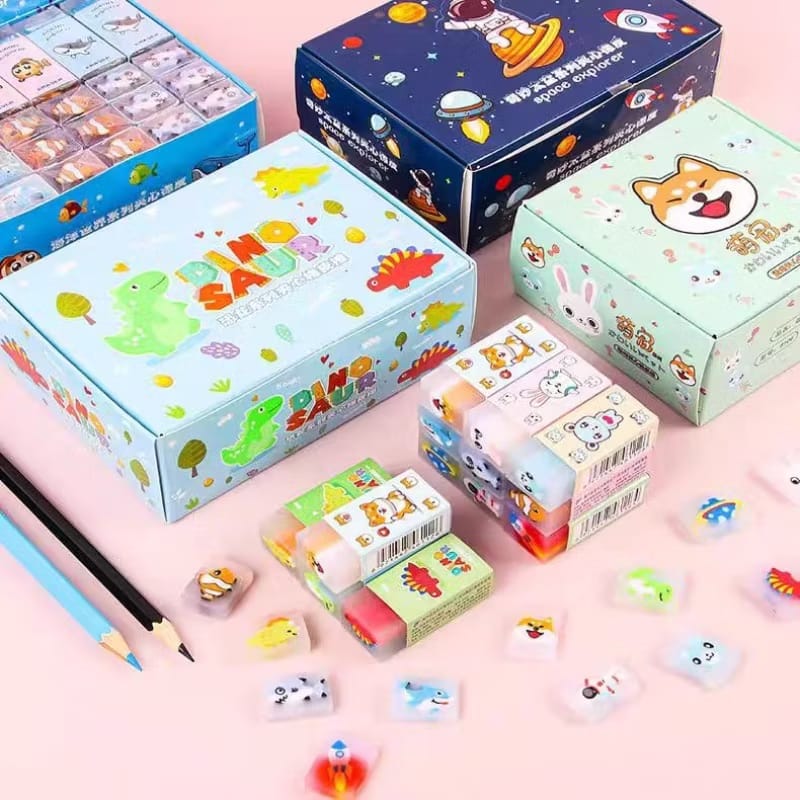 Penghapus Pensil Motif Buah dan Karakter Dinosaurus Sweet Eraser Karet Unik Anak Sekolah Ukuran Mini Lucu