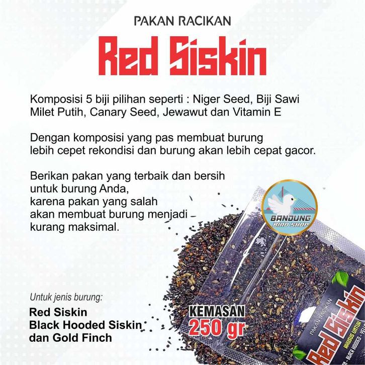 Pakan Red Siskin 250 Grm Untuk Burung Redsiskin Black Hooded Gold Finch Lebih Bersih