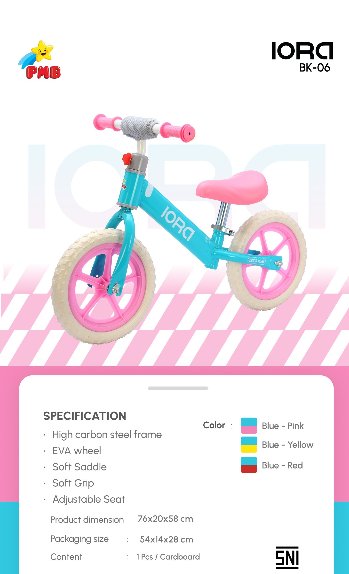 BALANCE BIKE IORA BK06 BK 06 EVA WHEEL High Carbon Steel Frame SEPEDA ANAK RODA 2 PMB TOYS