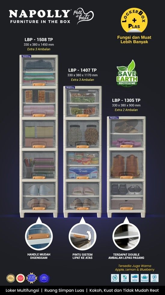 NAPOLLY LockerBox Lemari Plastik Minimalis Susun 3 4 5 (1 Tower)