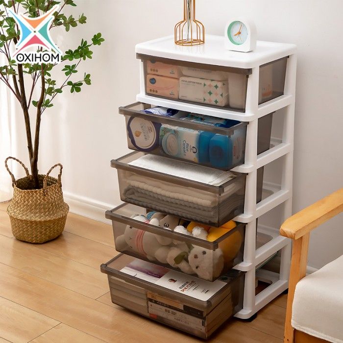 Oxihom Lemari Plastik Susun Transparan Laci Plastik Lemari Pakaian