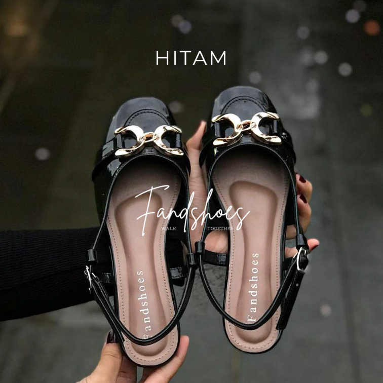 Sandal Mules 2 Cm Elegan Nyaman Sepatu Flat Shoes Hak Kondangan Kerja Cewek Bkn Zara Charles and keith Mewah Murah Ori