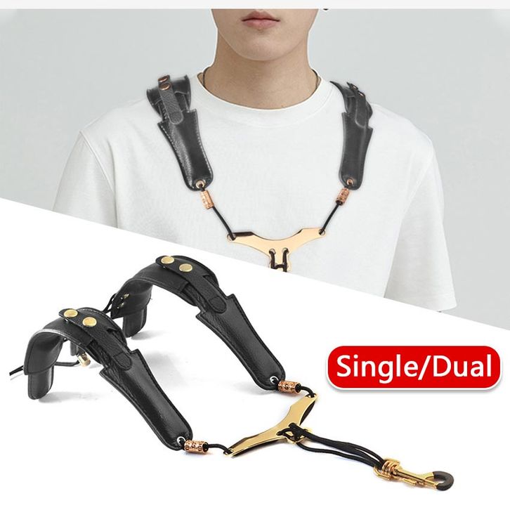 ADJUSTABLE SAXOPHONE NECK STRAP DUAL - KULIT IMPORT - NECK STRAP SAXOPHONE SOFT LEATHER PADDED SAX STRAP WITH METAL HOOK