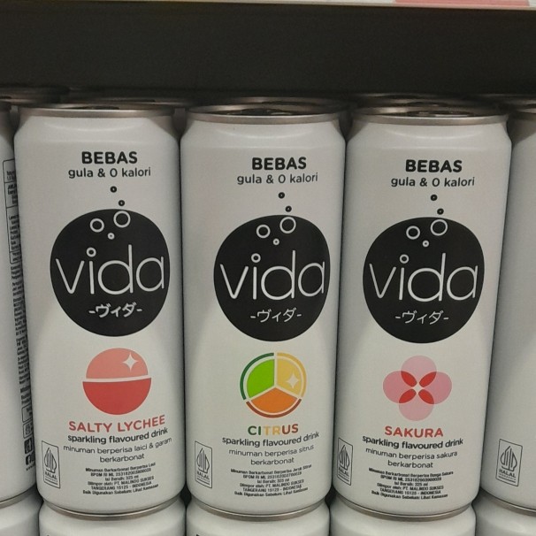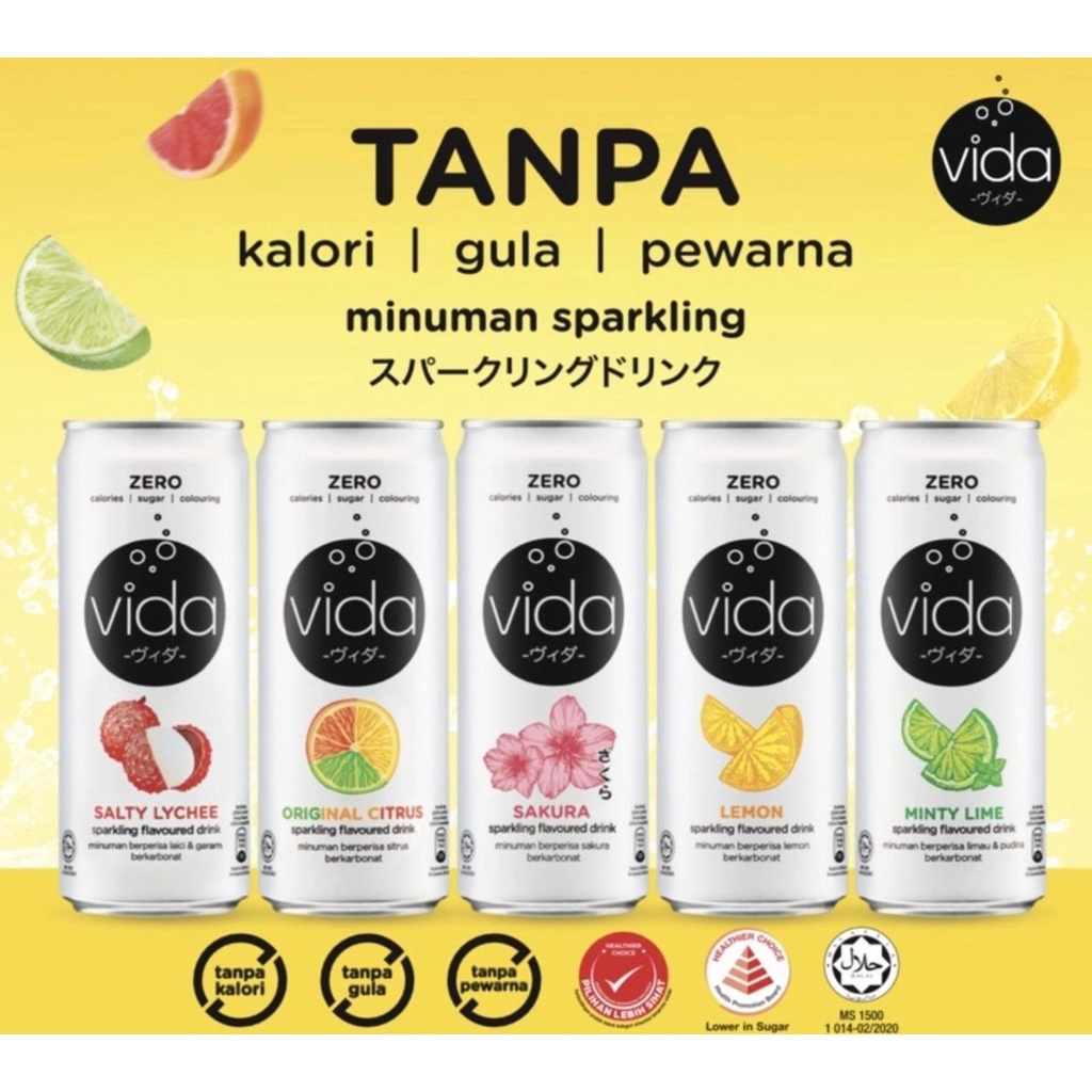 Minuman Kaleng Berkarbonat Berperisa / Sparkling Flavoured Water Can Vida 325 Ml x 6 Varian Citrus, Salty Cheese, Sakura