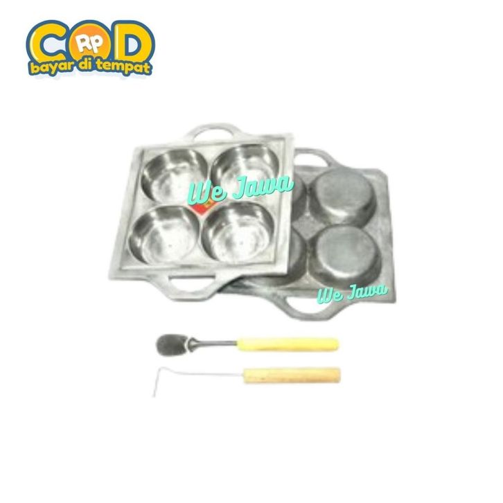 Cetakan Martabak Mini / Kue Lumpur / Cetakan Cimin 4 Lubang Gratis Tutup, Cungkilan Pengait Dan Spatula