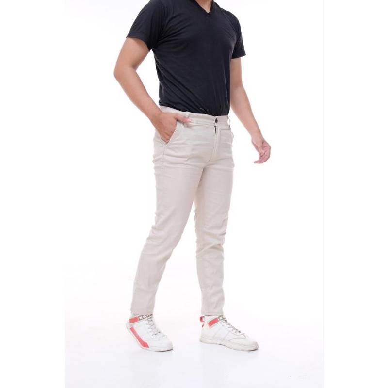 (Gratis Ongkir) Celana Panjang Slimfit Chino/Cino/Chinos Pria/Cowok Pensil - Krem(Cream)/Abu(Grey)/Hitam(Black)