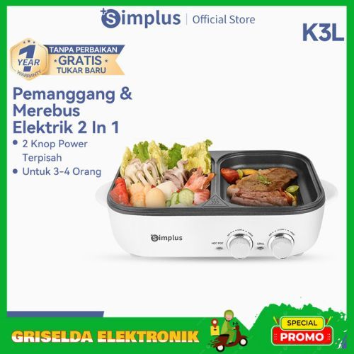 Pemanggang Elektrik Pemanggang Modern Anti Lengket Simplus Multifungsi 2in1 Panggang Goreng Hotpot Rumah Tangga