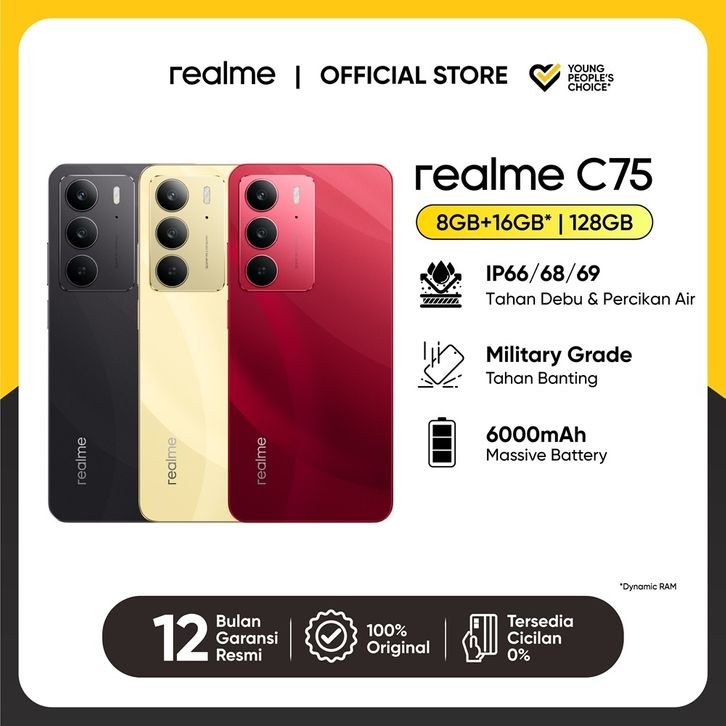 Hp Realme C75 8GB+16GB/128GB Military Grade Shock Resistance Garansi Resmi Original Official Store