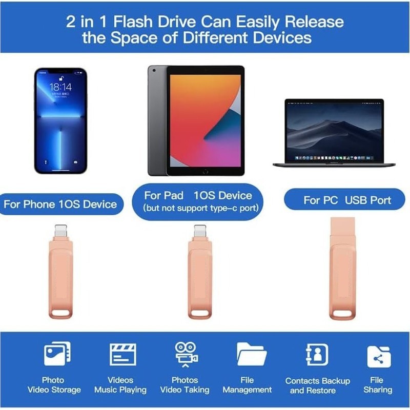 Kingston 2TB Pendrive,1TB Lightning Flash Drive,2-in-1 USB3.0 otg memory stick for iphone,128GB external storage pen