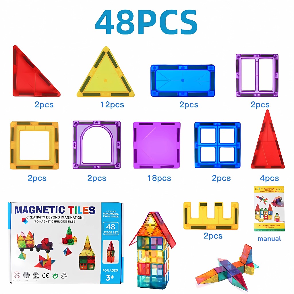 Magnetic Tiles 48/88/120PCS Mainan READY STOK Magnet Puzzle Montessori Building Block 3D Mainan edukasi Anak bongkar