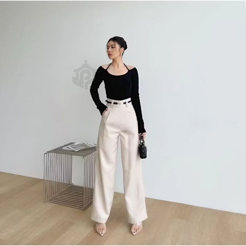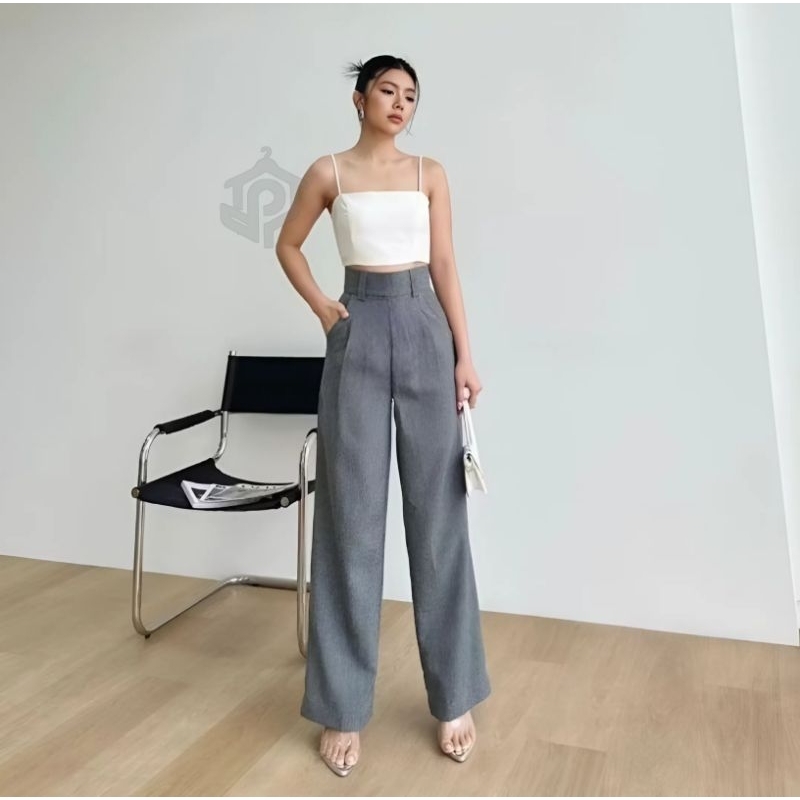 (Gratis Ongkir) Pulvei - Diora Highwaist Pants / Celana Kulot Straight Cutpants Wanita Anti Kusut