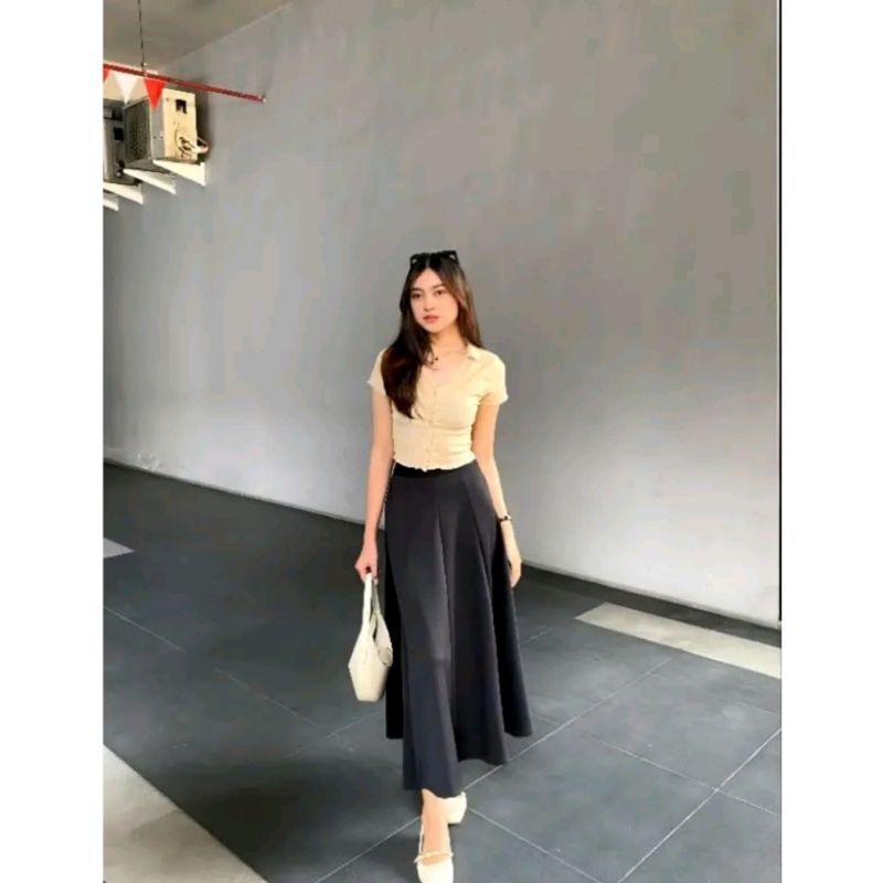 (FLASH SALE) Audy Skirt - Korean Loose Maxi Skirt Rok Wanita Anti Kusut Polyester - Rok Flare Wanita - Rok Basic Polos