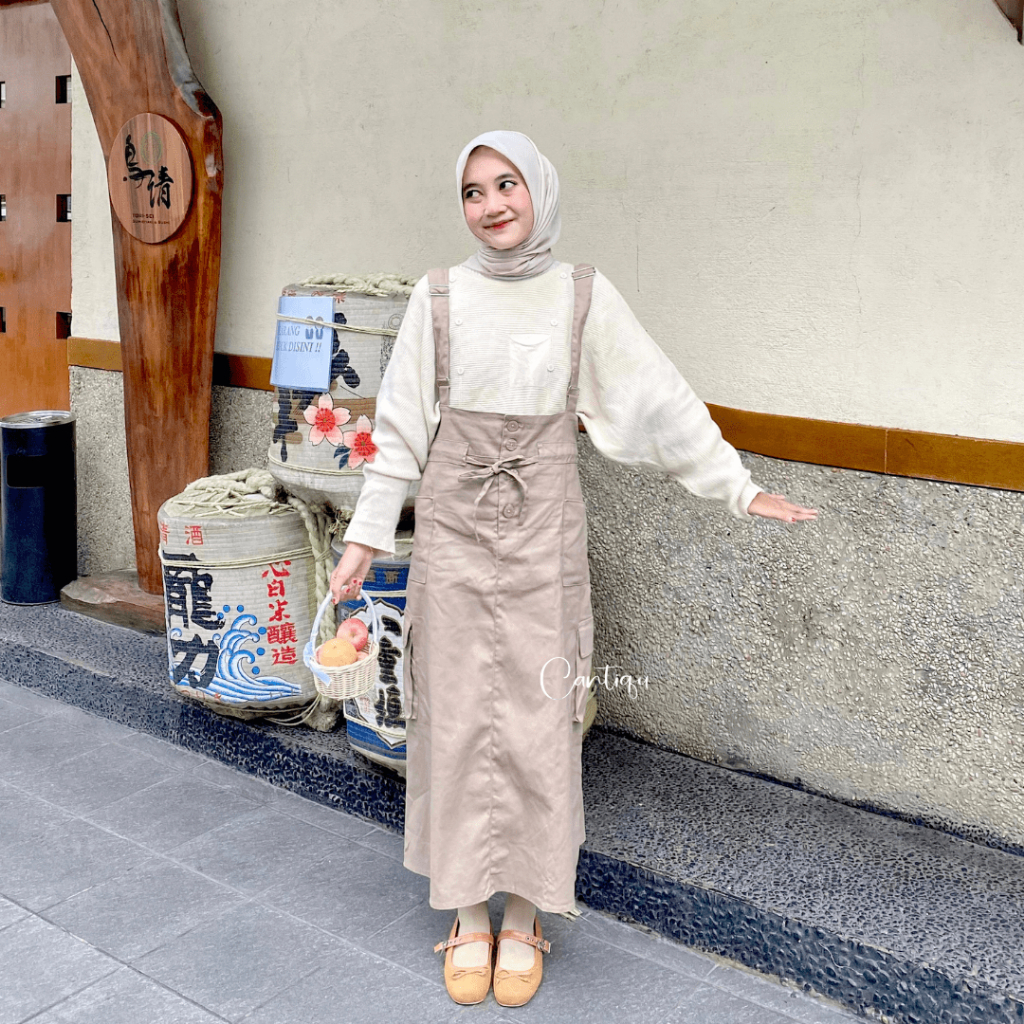 (FLASH SALE) Cantiqu - Overall Katun Twill Najma Jumpsuit Wanita Rok Cargo