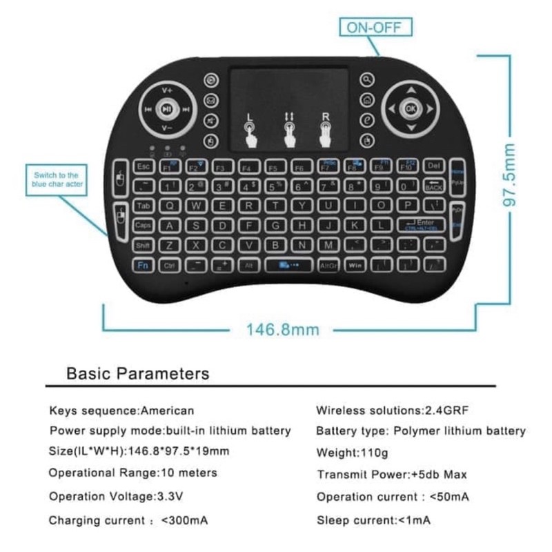 [Star]Keyboard Wireless mini i8 RGB Backlit Colorful Touchpad/ Wireless keyboard mini/mini keyboard wireless