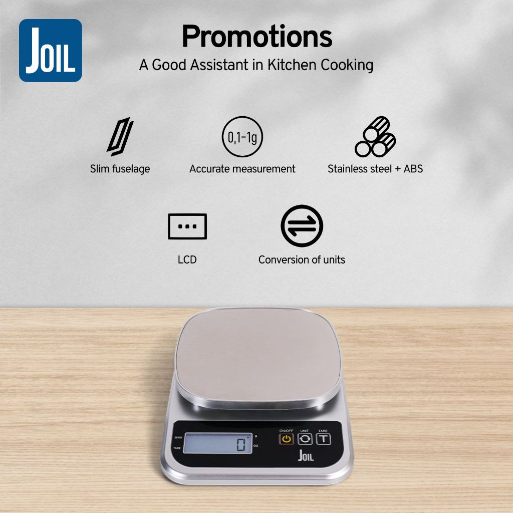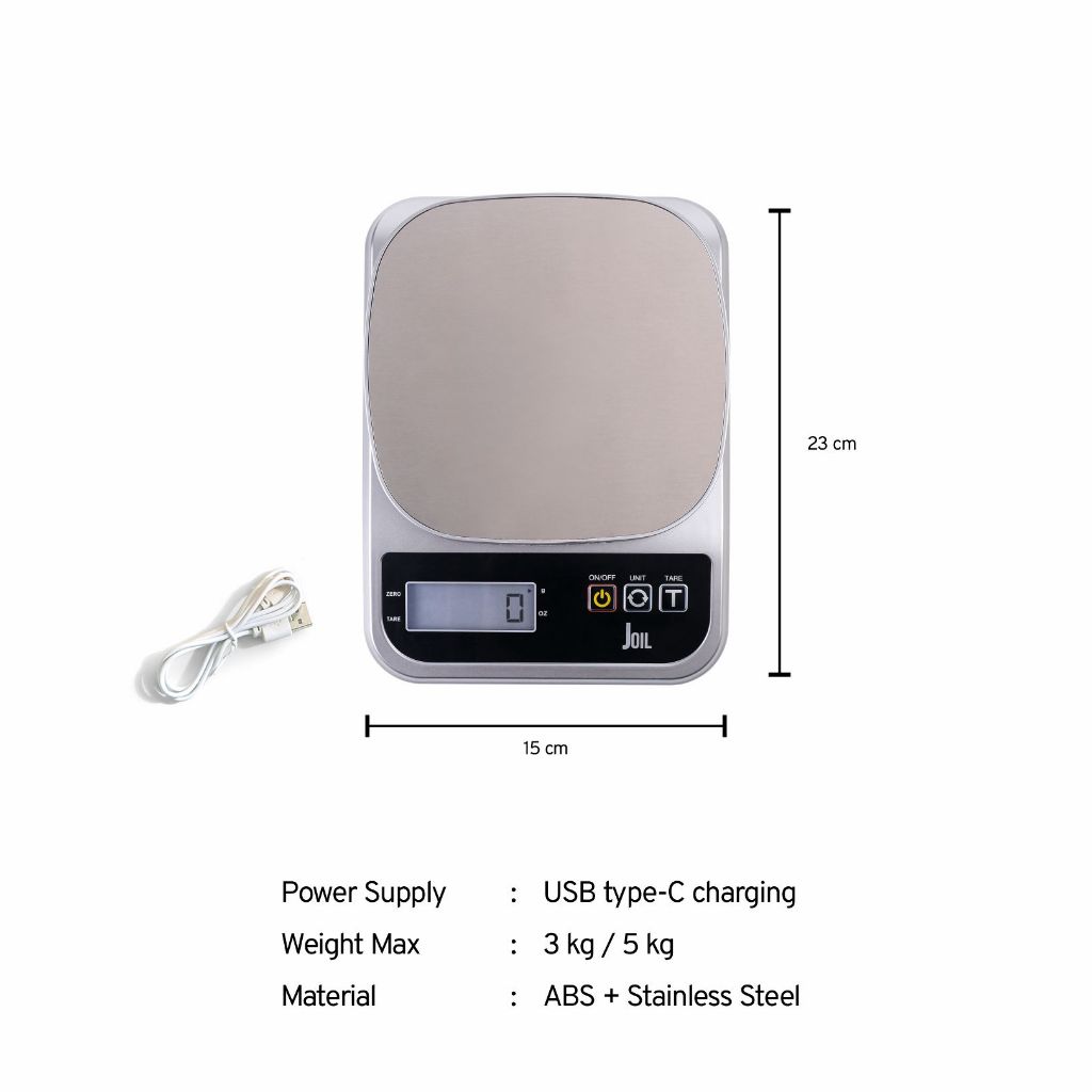 [Star] Joil Timbangan Dapur Digital Stainless Steel Tare & Chargeable D9