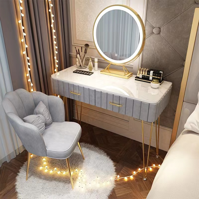 MEJA RIAS KAMAR TIDUR NORDIC MODERN IMITASI MARMER KURSI RIAS PAKET MEJA DAN KURSI