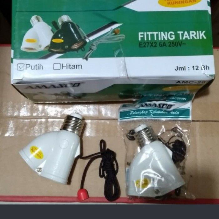 Fiting gantung tarik 2 lampu Amasco - Putih