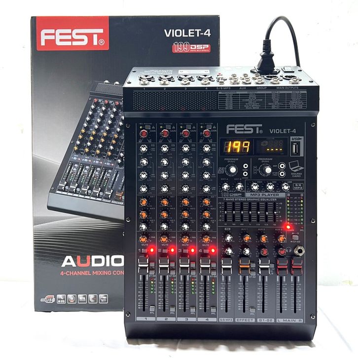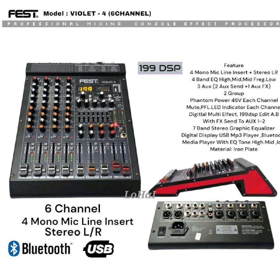 Mixer Fest Violet 4 Original 4 Channel USB MP3 Bluetooth