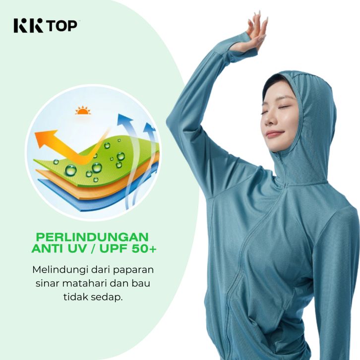 Jaket Olahraga Anti UV Wanita Baju Olahraga UPF50+ Breathable Outdoor Cepat Kering