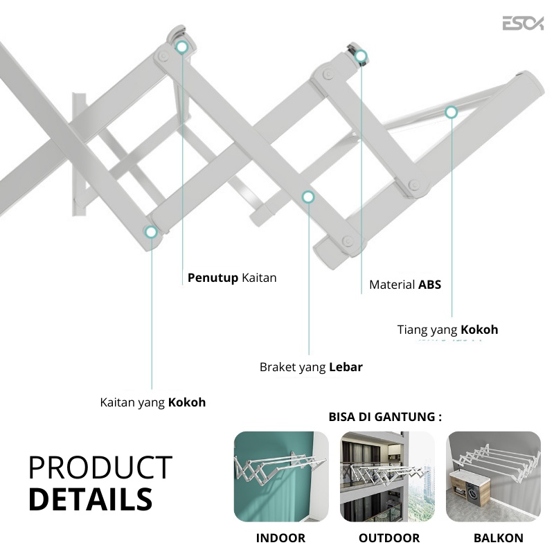[Star] Jemuran Baju Tempel Dinding - Rak Jemuran Pakaian Basah Lipat Rak Jemuran Tembok
