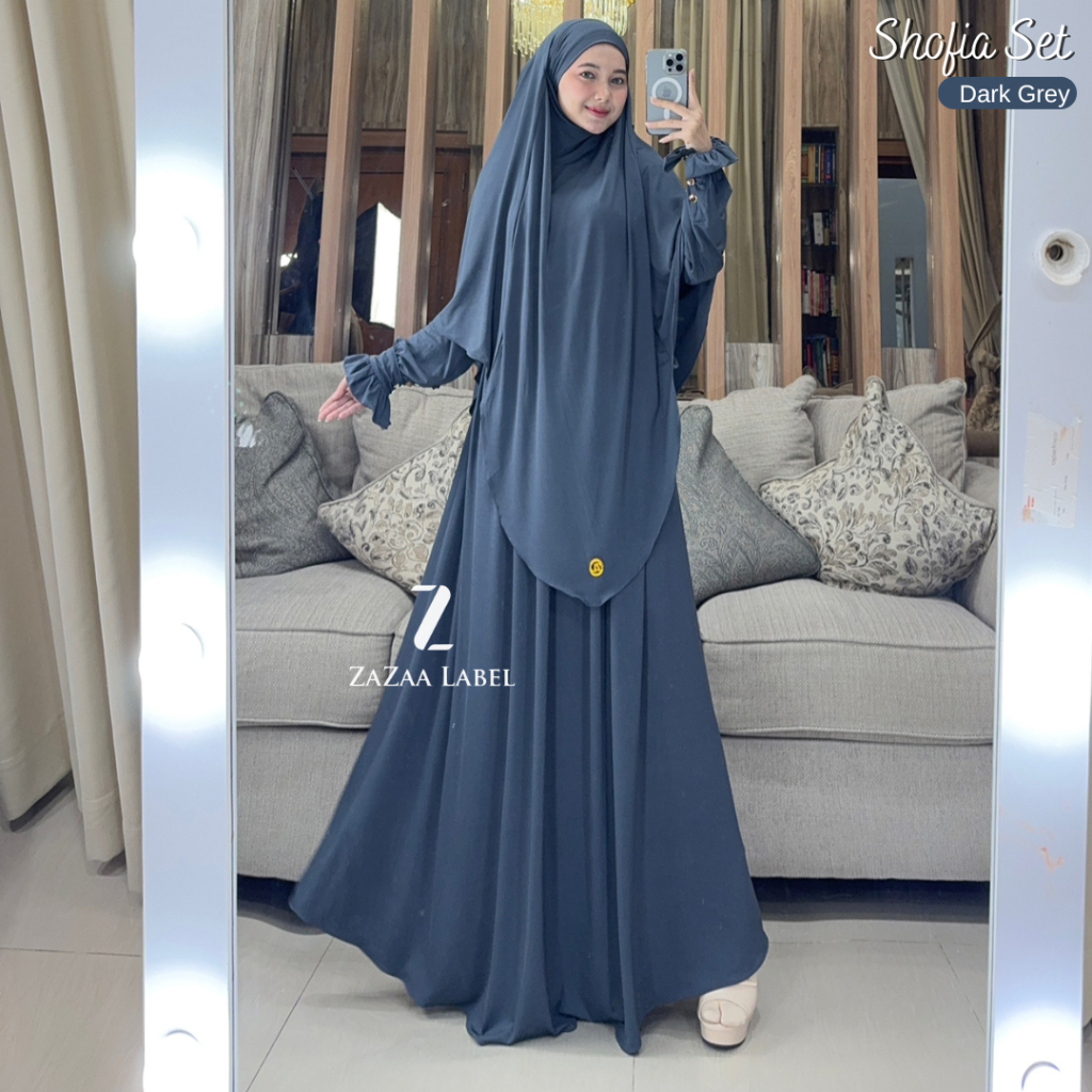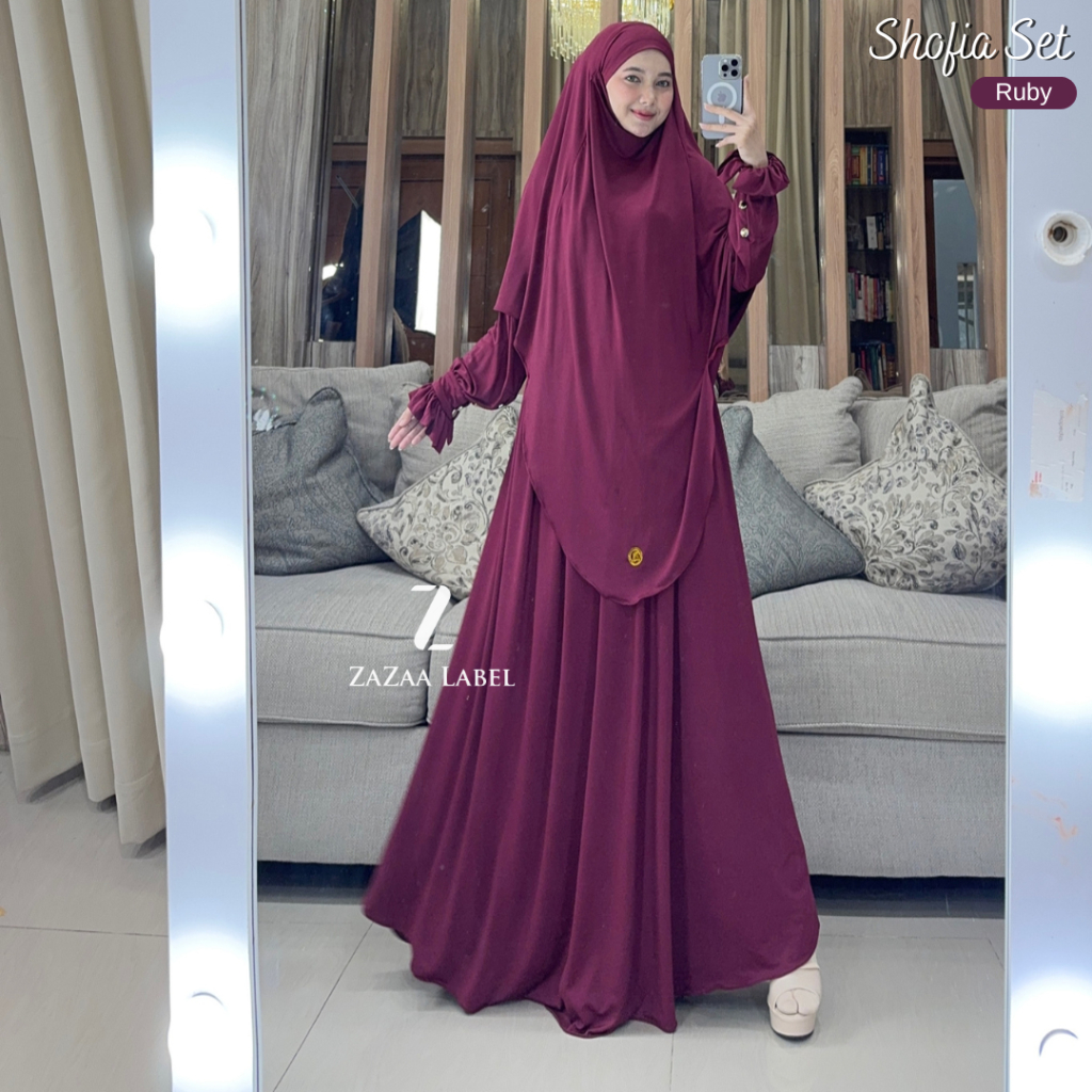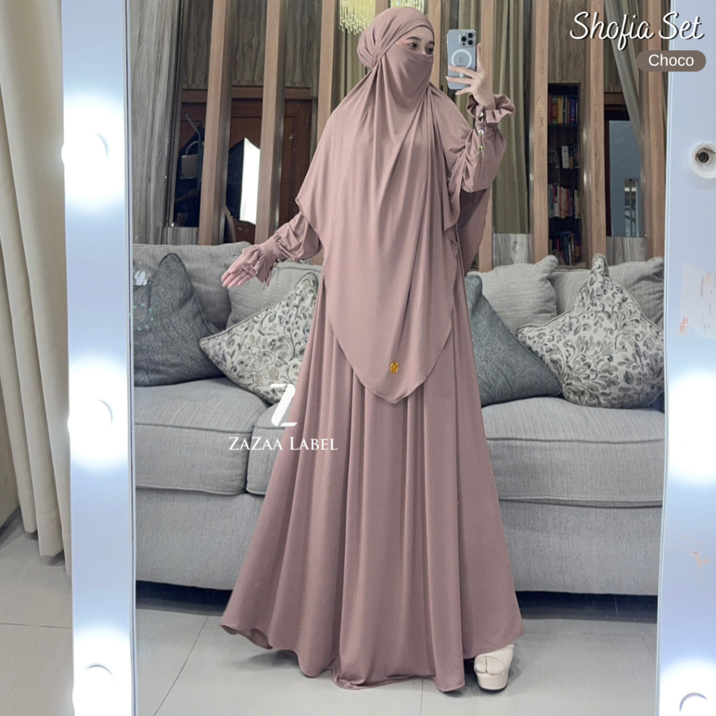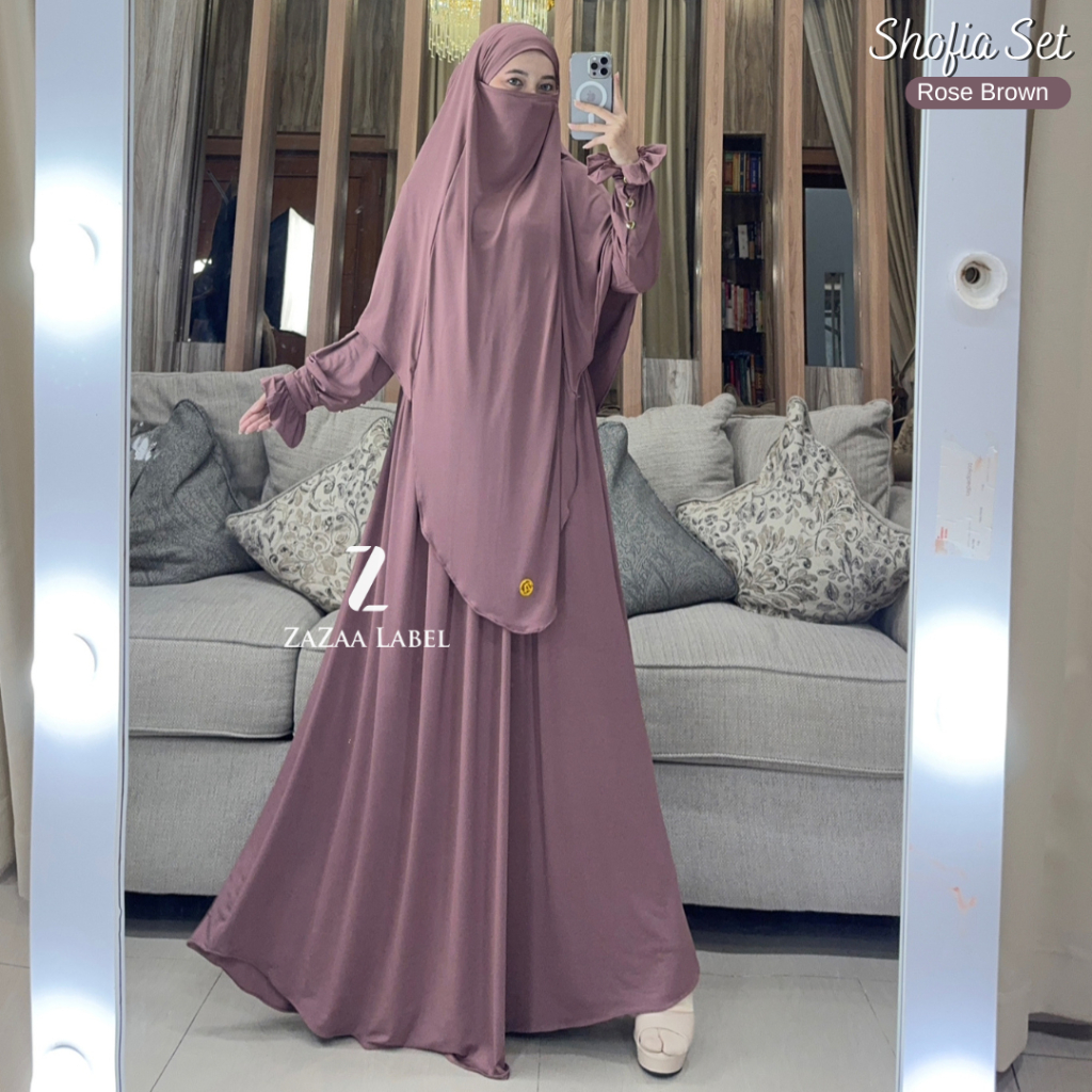 Baju Gamis wanita umrah dan haji 2025 Shofia Jersey Set Hijab dan Niqab Muslimah Polos Busui Wanita
