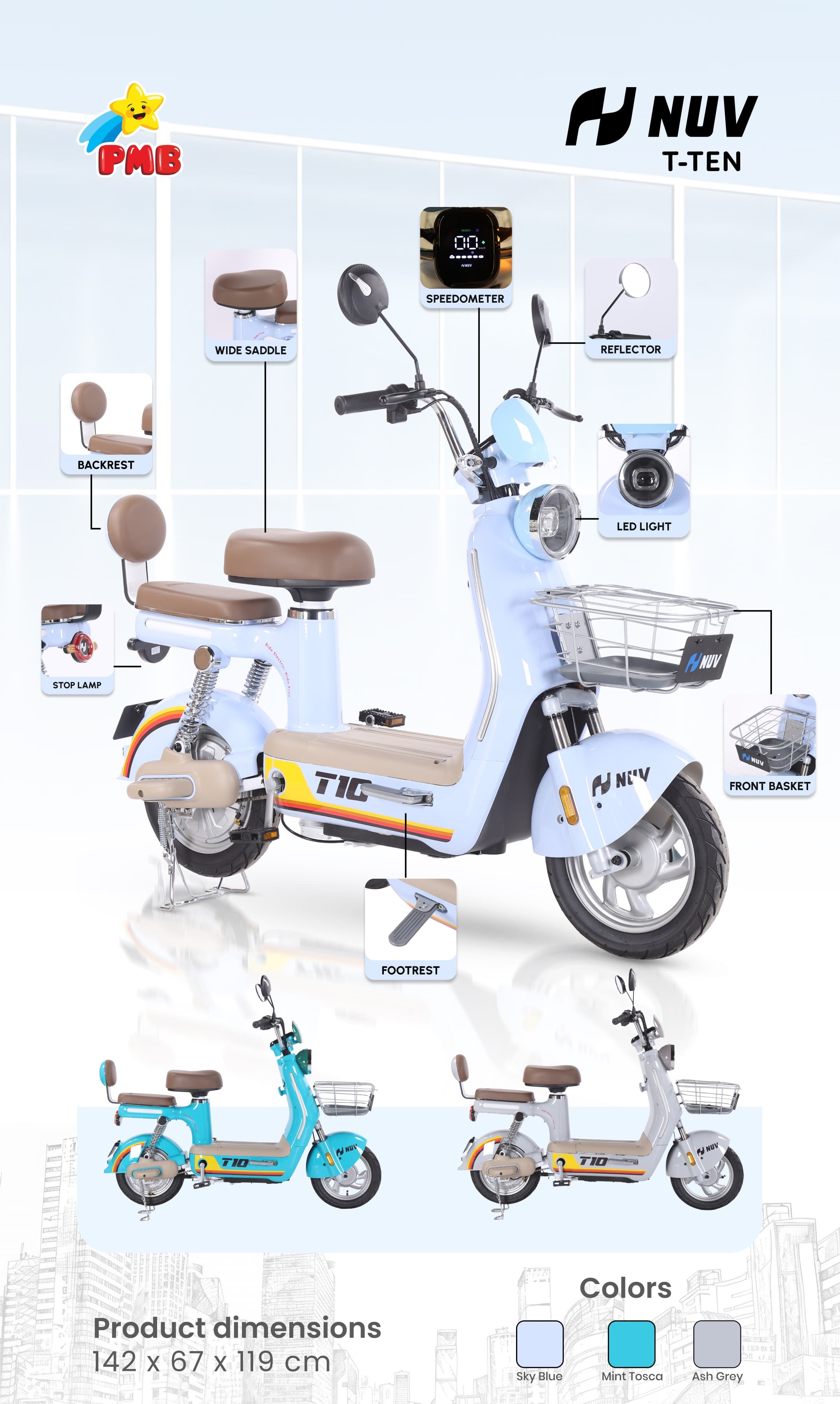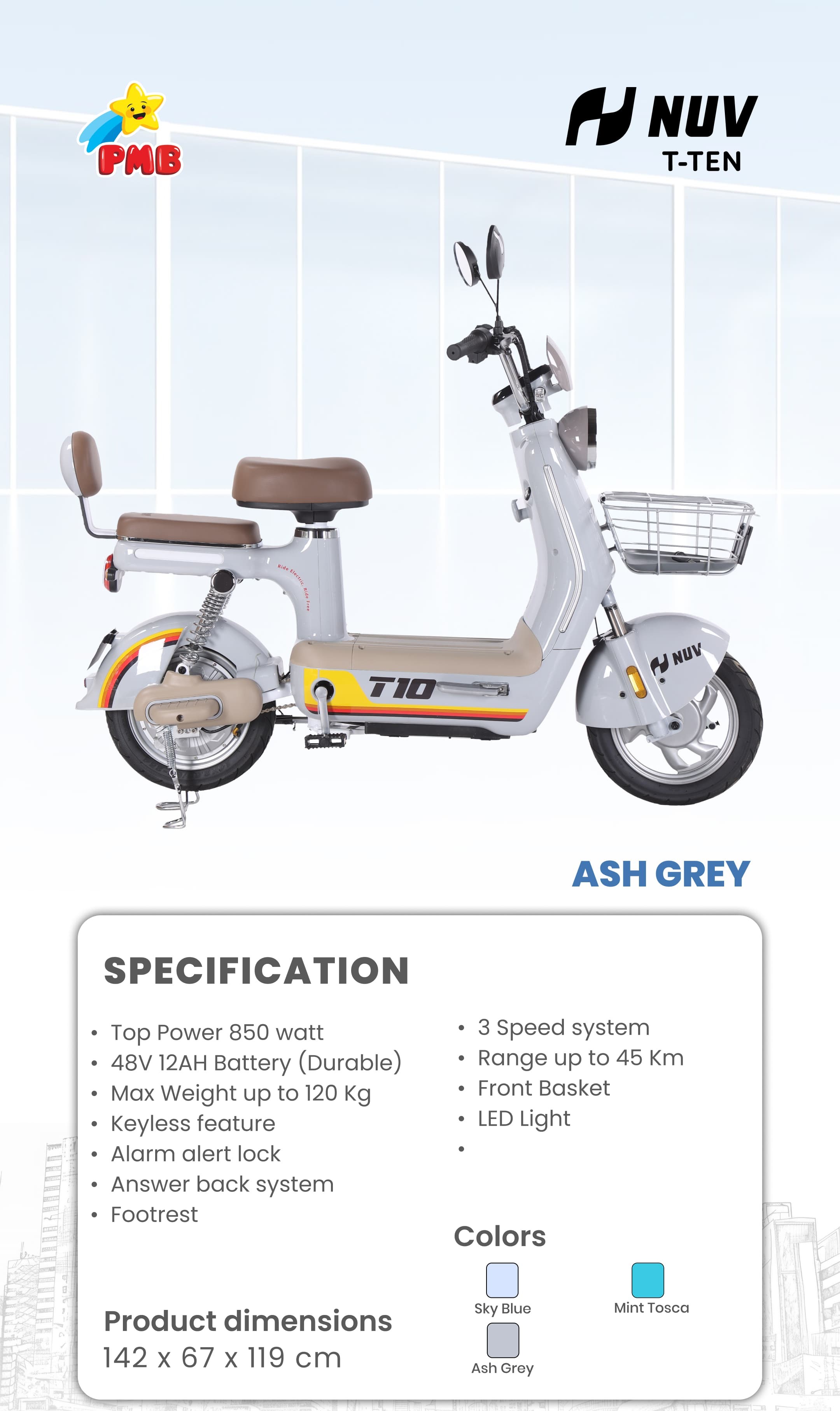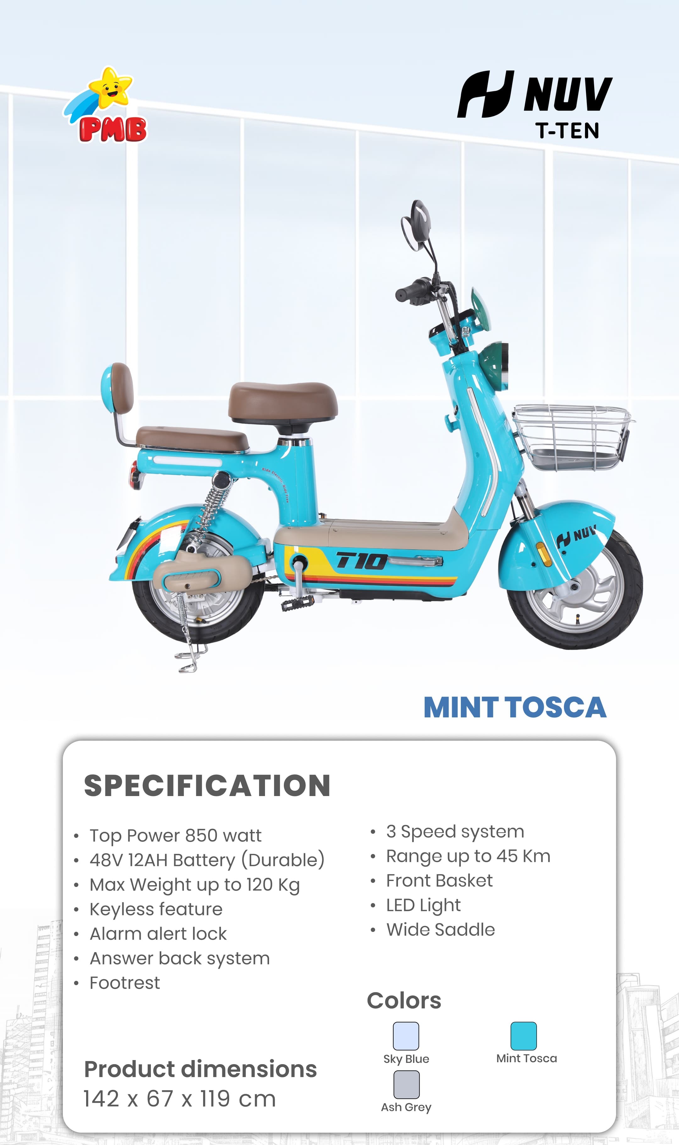 SEPEDA LISTIK NUV T-TEN TOP POWER 850WATT Baterai 48V 12AH (Durable) lampu led keranjang depan pmb toys Berat maksimal s