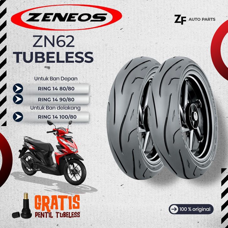 SEPASANG / SATUAN BAN MOTOR BEAT ZENEOS ZN62 RING 14 TUBELESS DEPAN BELAKANG VARIO BEAT MATIC GENIO