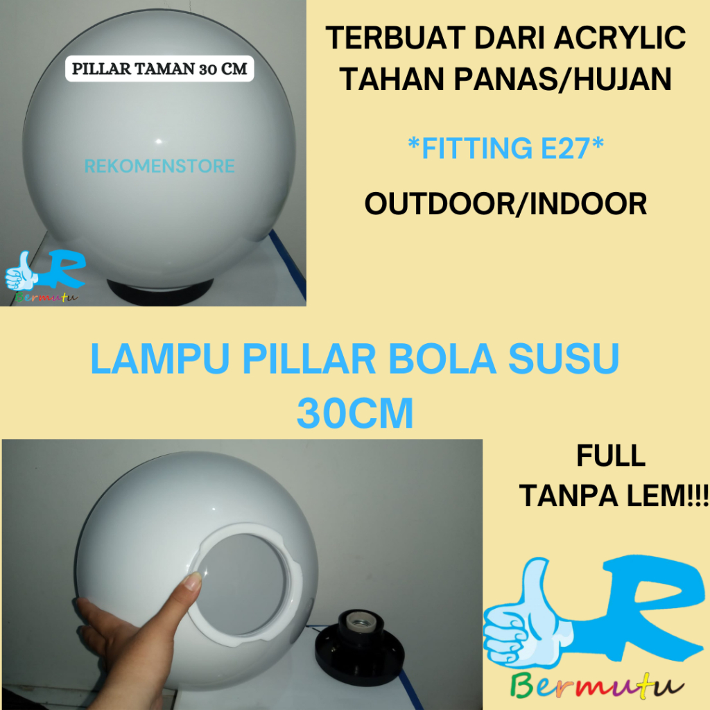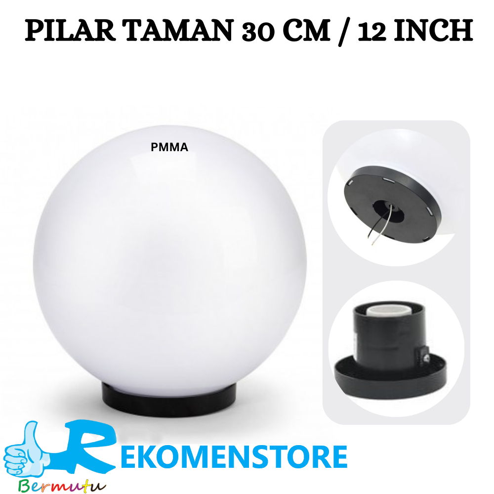 LAMPU PILAR SUSU 30CM LED TAMAN BULAT BOLA ACRYLIC ANTI PECAH OUTDOOR FULL TANPA LEM 30 CM 12 INCH
