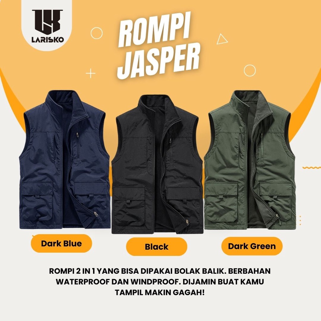 (FLASH SALE) Larisko Vest Rompi Jasper 2IN1 Bolak Balik Windbreaker Multifungsi