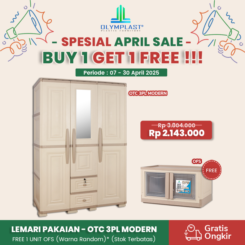 Olymplast OTC 03P Modern / Lemari Plastik 3 Pintu / Lemari Baju / Lemari Pakaian