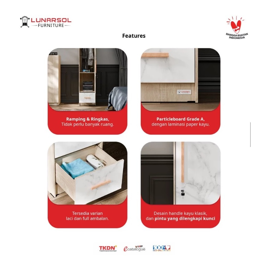 MORA 1 Series Lemari 1 Pintu | Lemari Pakaian 1 Pintu | Lemari Baju Minimalis