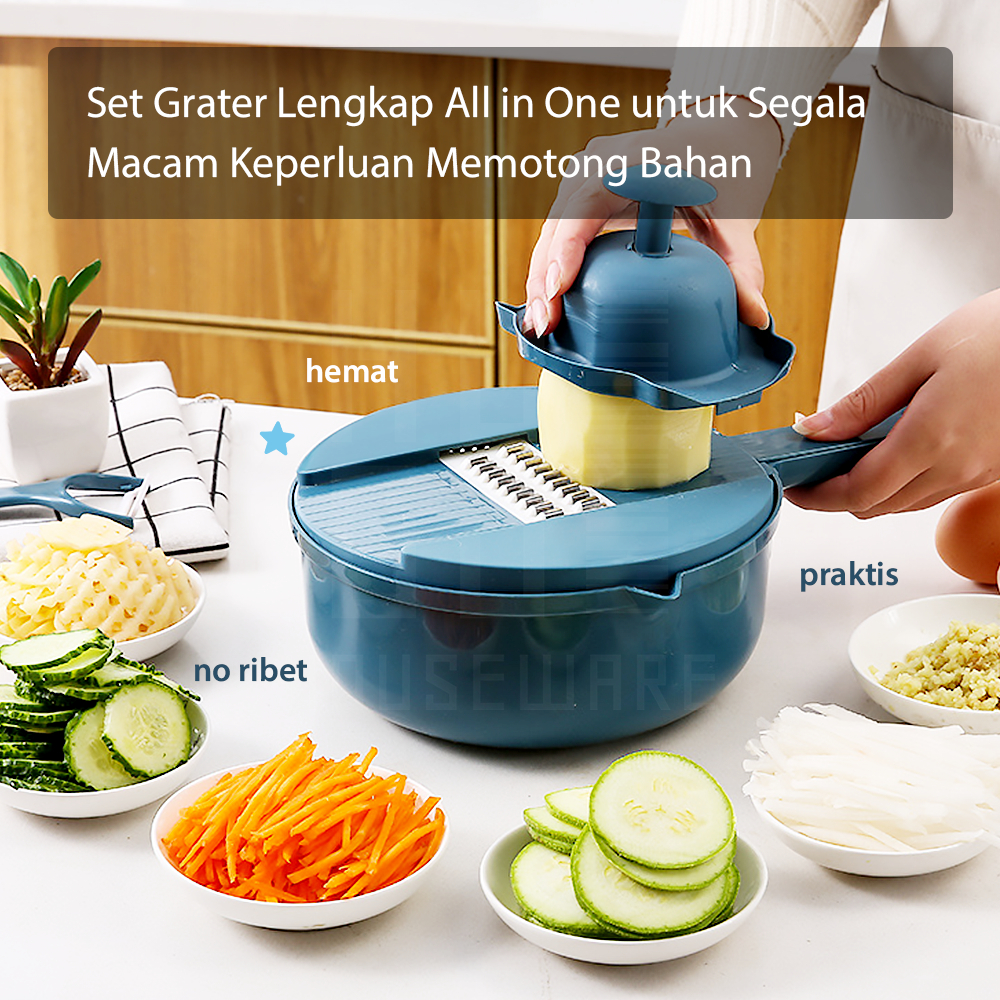 HUGO Parutan Serbaguna Set 11 in 1 Parutan Sayur Buah Wortel Kentang Multifungsi Peeler Pemotong Pengupas Serbaguna