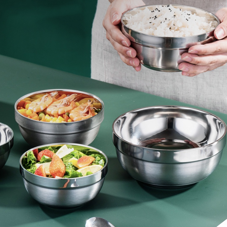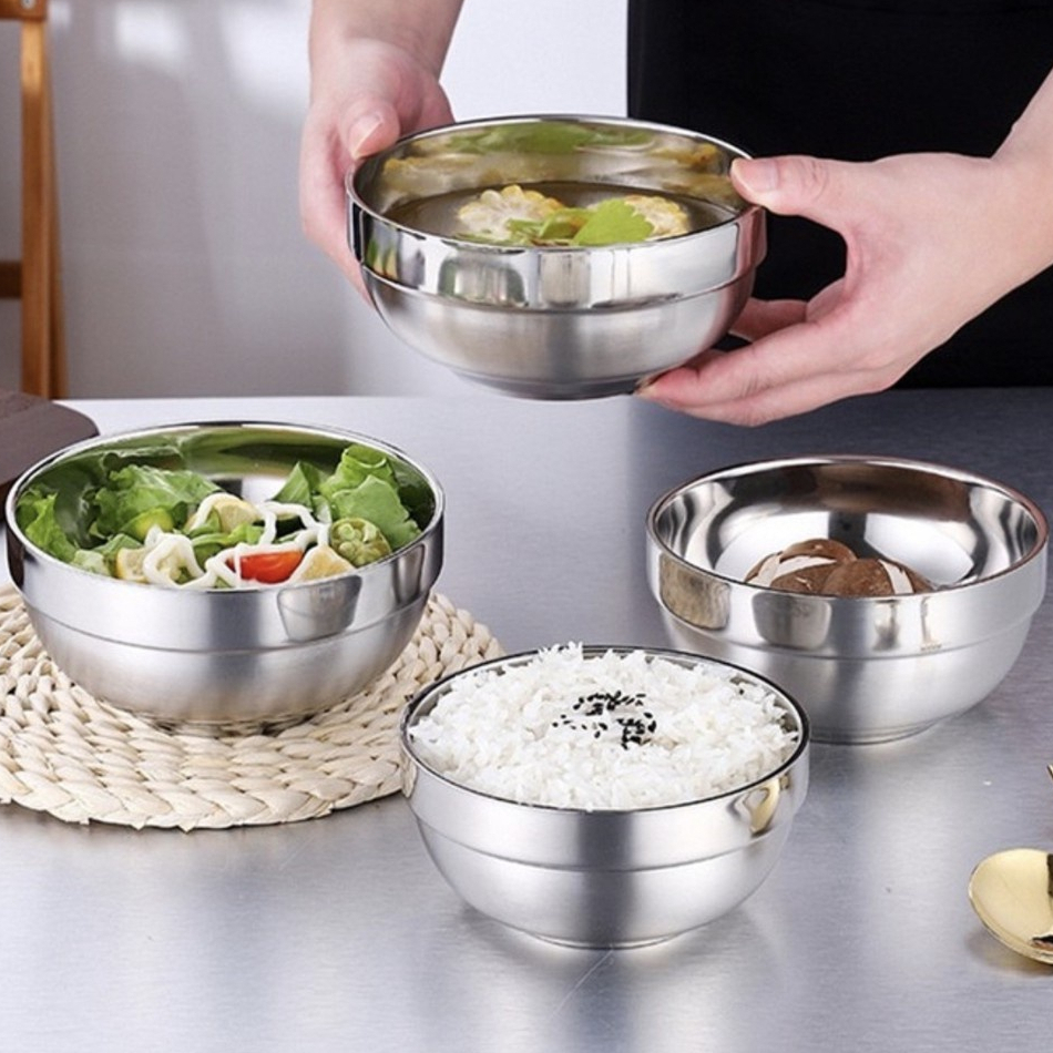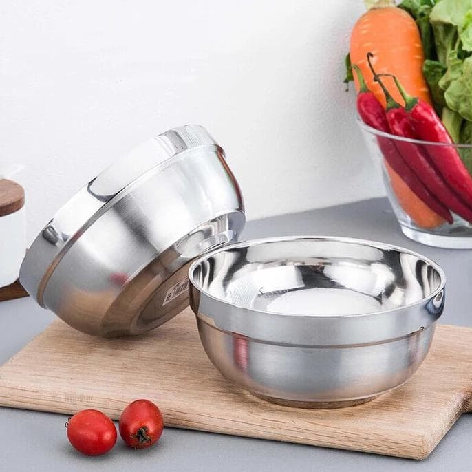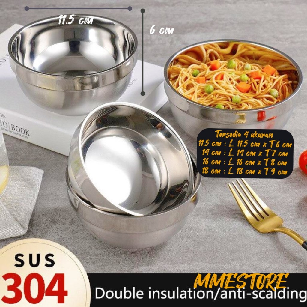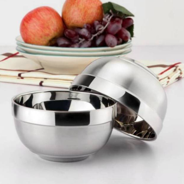Mangkok Korea Stainless Steel Tebal / Mangkuk Dua Lapis Anti Panas Tanpa Tutup