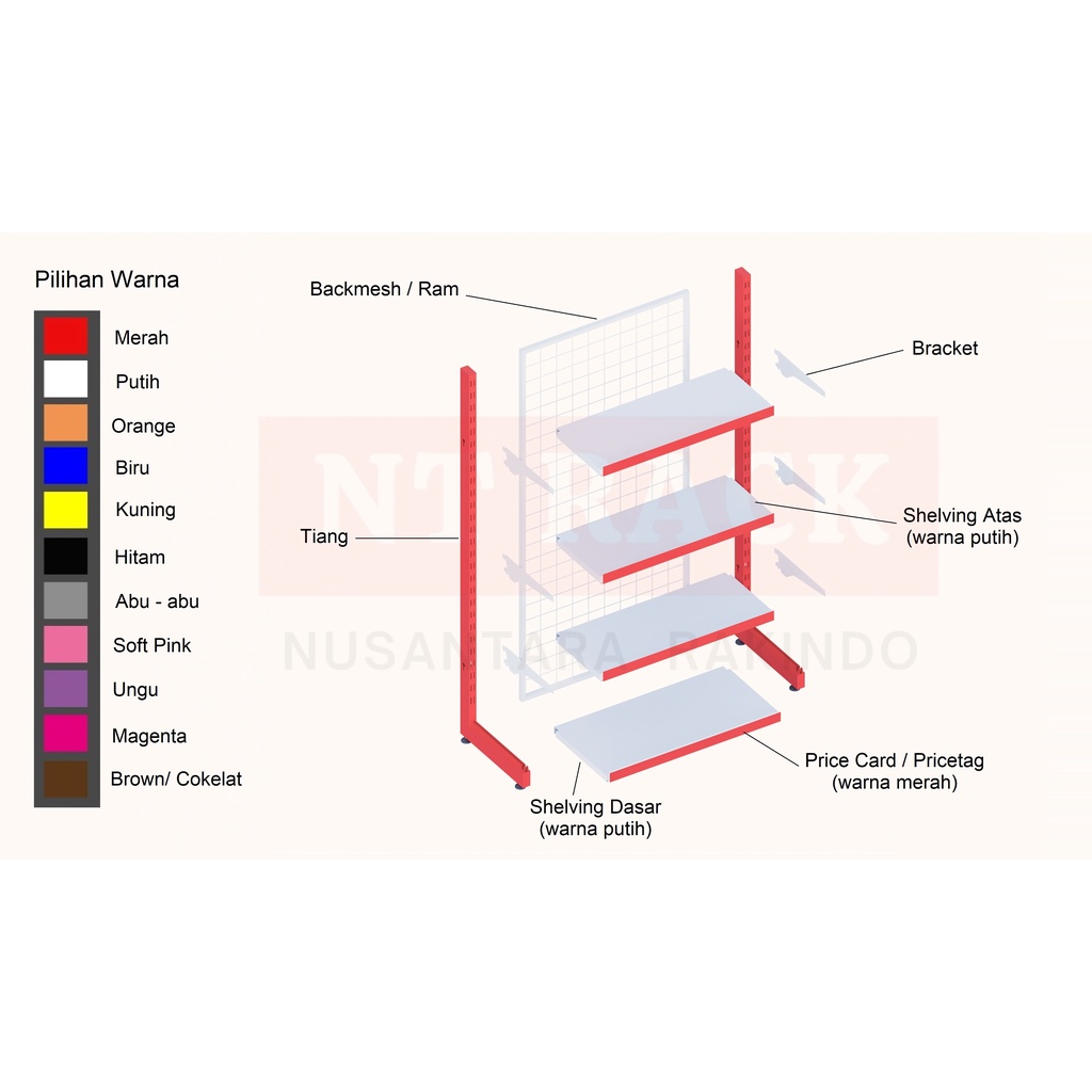 Rak Gondola Logam Tipe A3 Kapasitas 35Kg Rak Toko Minimarket Termurah Free Ongkir