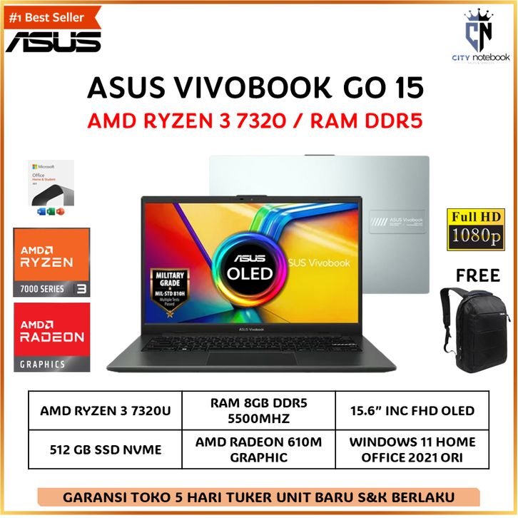 Laptop ASUS VIVOBOOK 15 GO OLED E1504FA RYZEN 3 7320U 8GB 512GB SSD W11 OHS 15.6 FHD