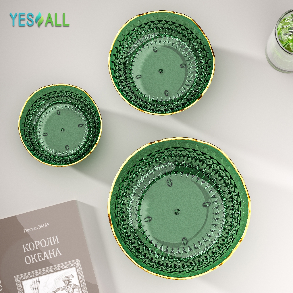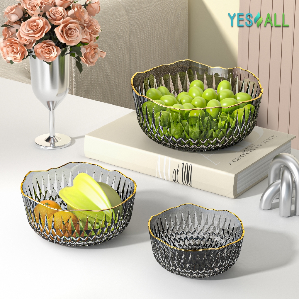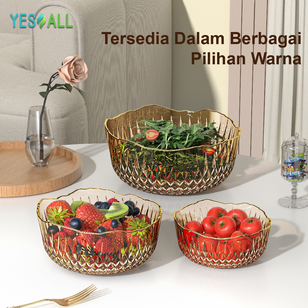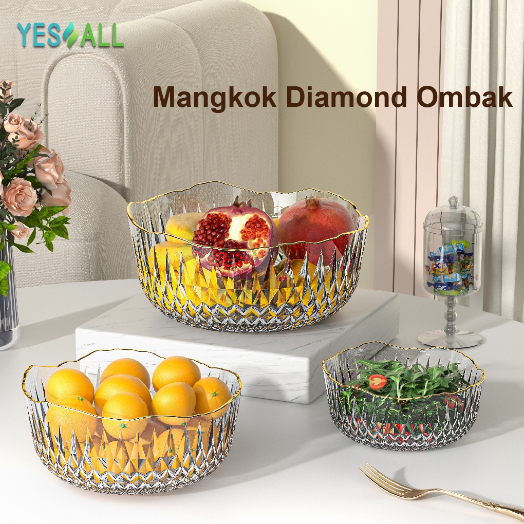 YESALL Mangkok Diamond Motif Ombak Transparan Aesthetic - Transparan Bowl List Transparent Mangkuk Salad Sayur List Ma