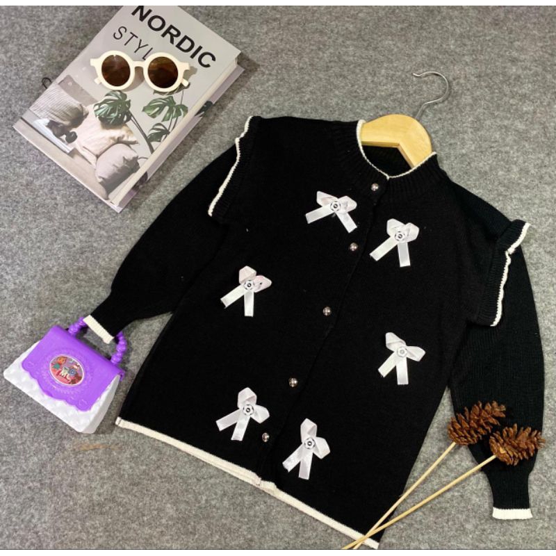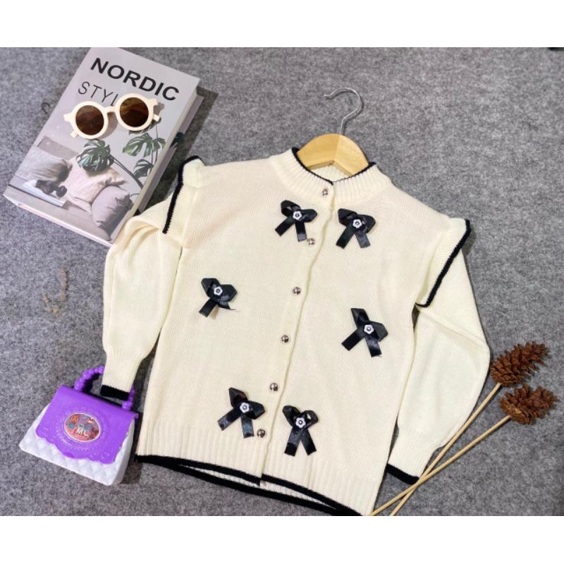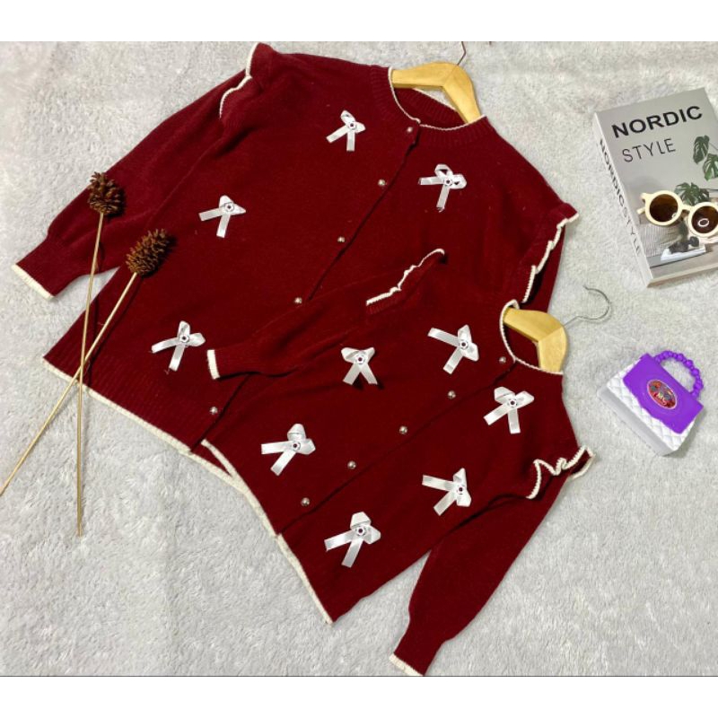 Poppy Cardigan Rajut 1-12 Tahun Pita Couple Ibu Anak Perempuan Outer Wanita (Harga Terpisah)