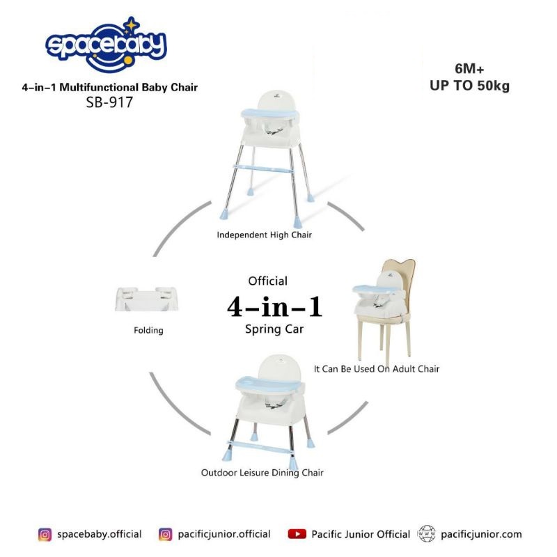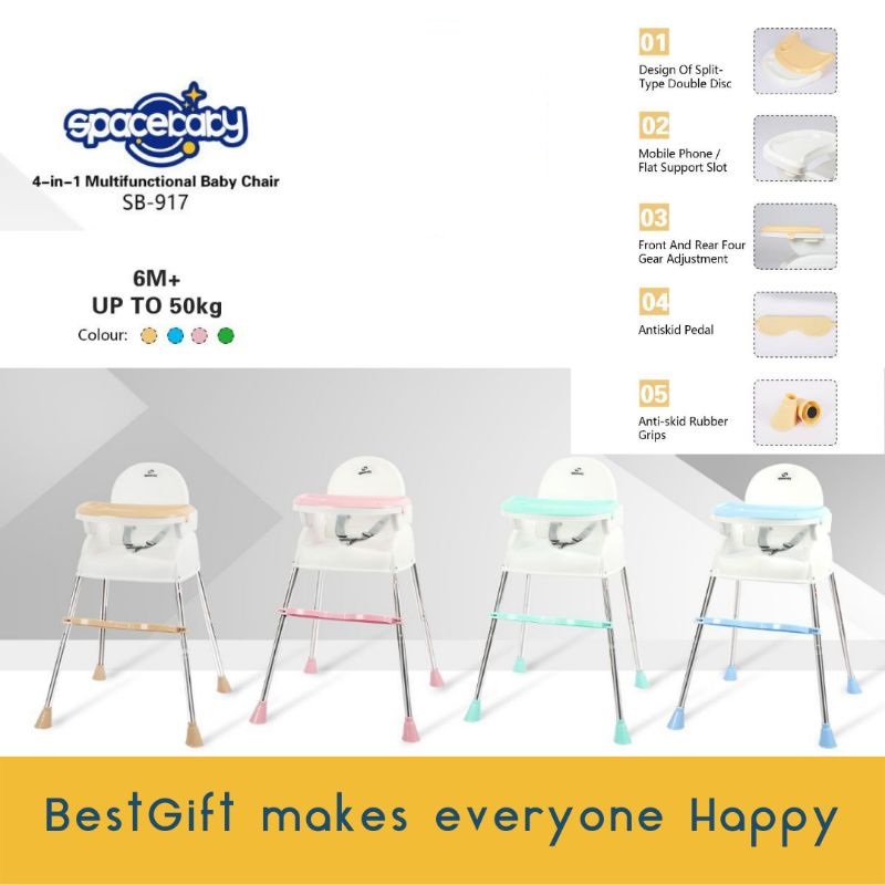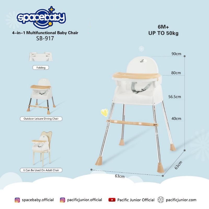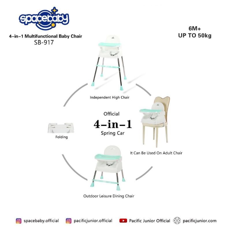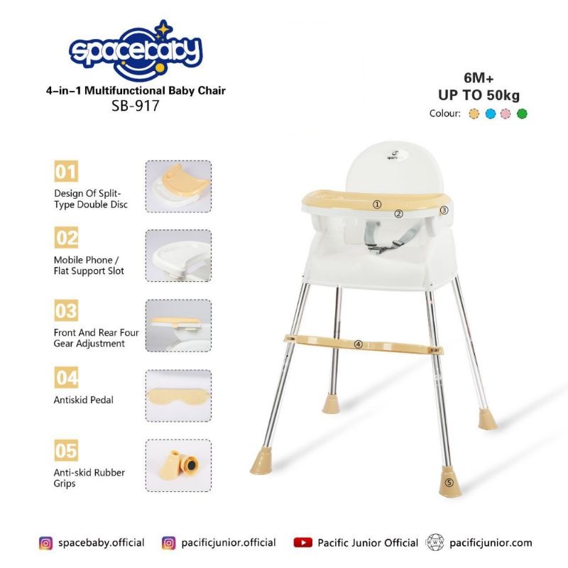 Baby High Chair SB 917 SPACEBABY Meja Makan Bayi Kaki Stainless Steel