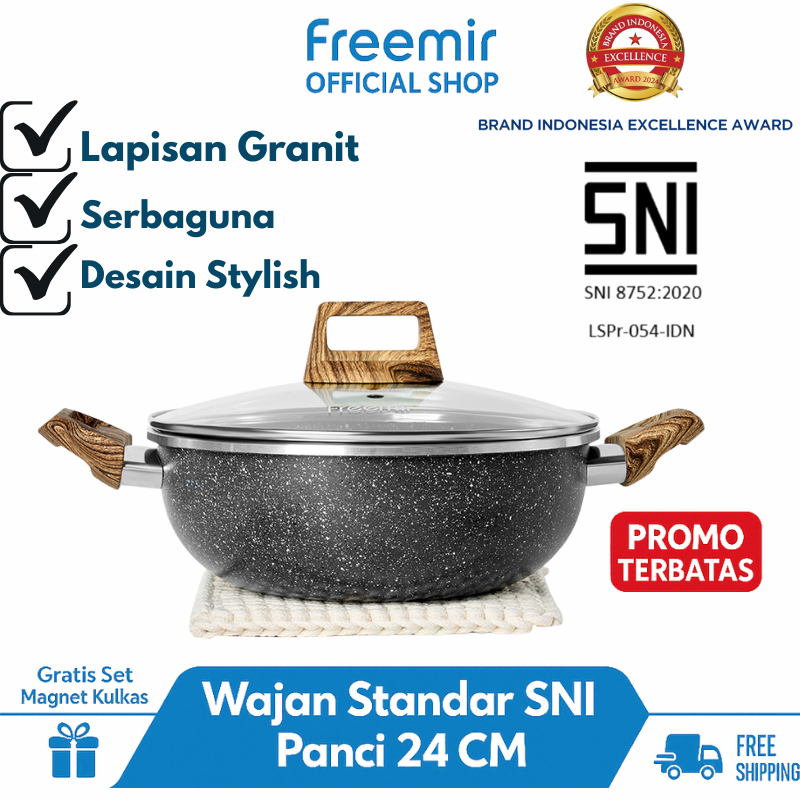 [Star] freemir Wajan Standar SNI Panci 24 CM Tinggi 10 CM Wajan Penggorengan Anti Lengket dengan Tutup Kaca dan Gagang