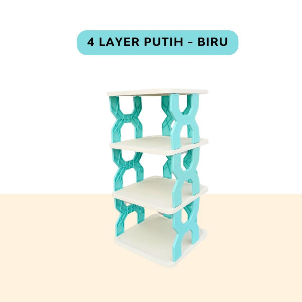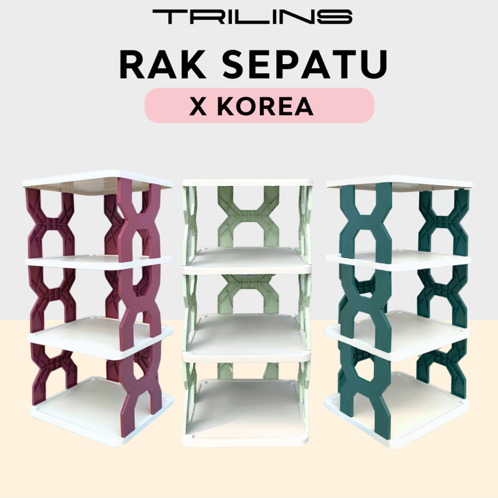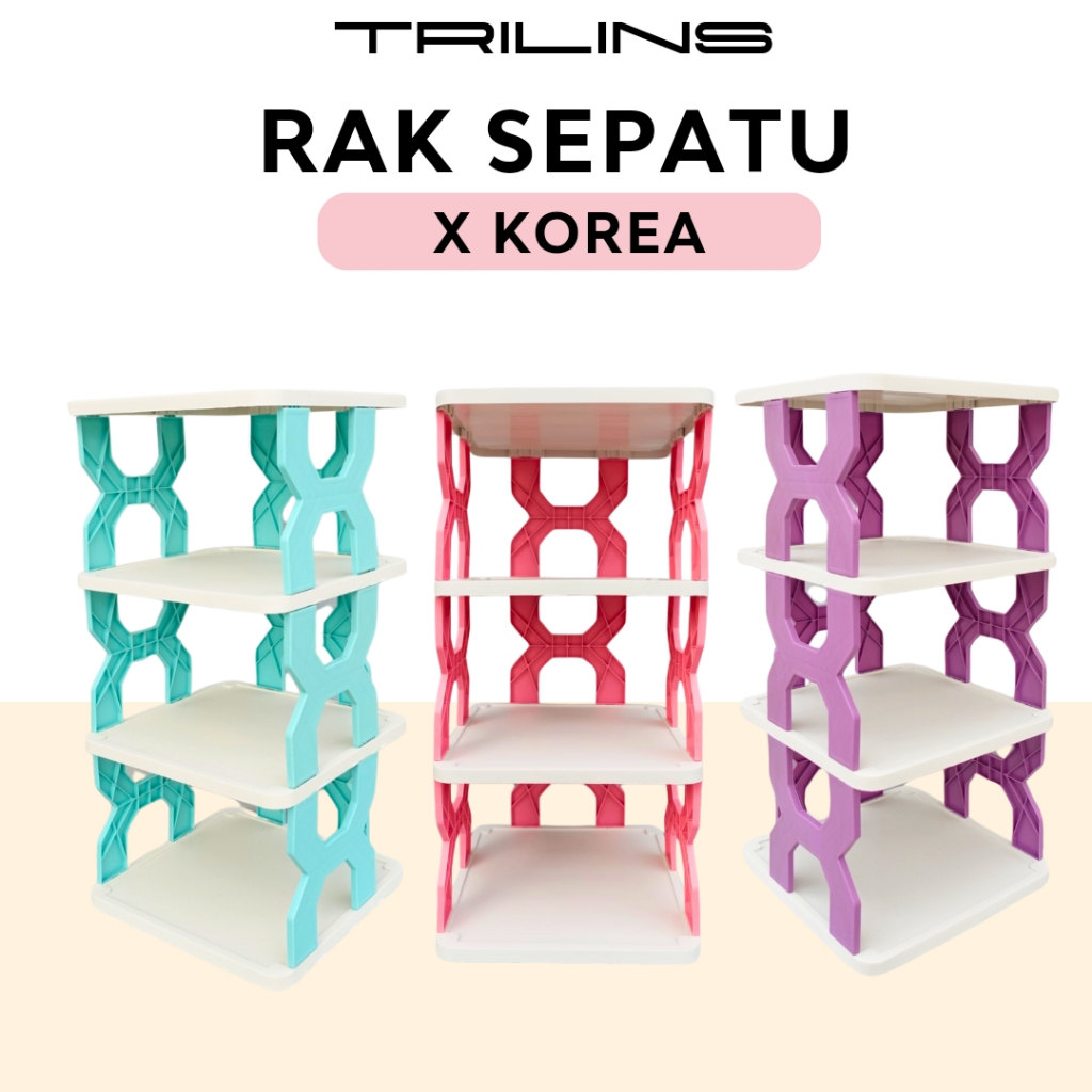 RAK SEPATU X KOREA Plastik Rak Penyimpanan sandal boneka zig zag 4 & 5 tingkat - TRILINS WHITE BASE