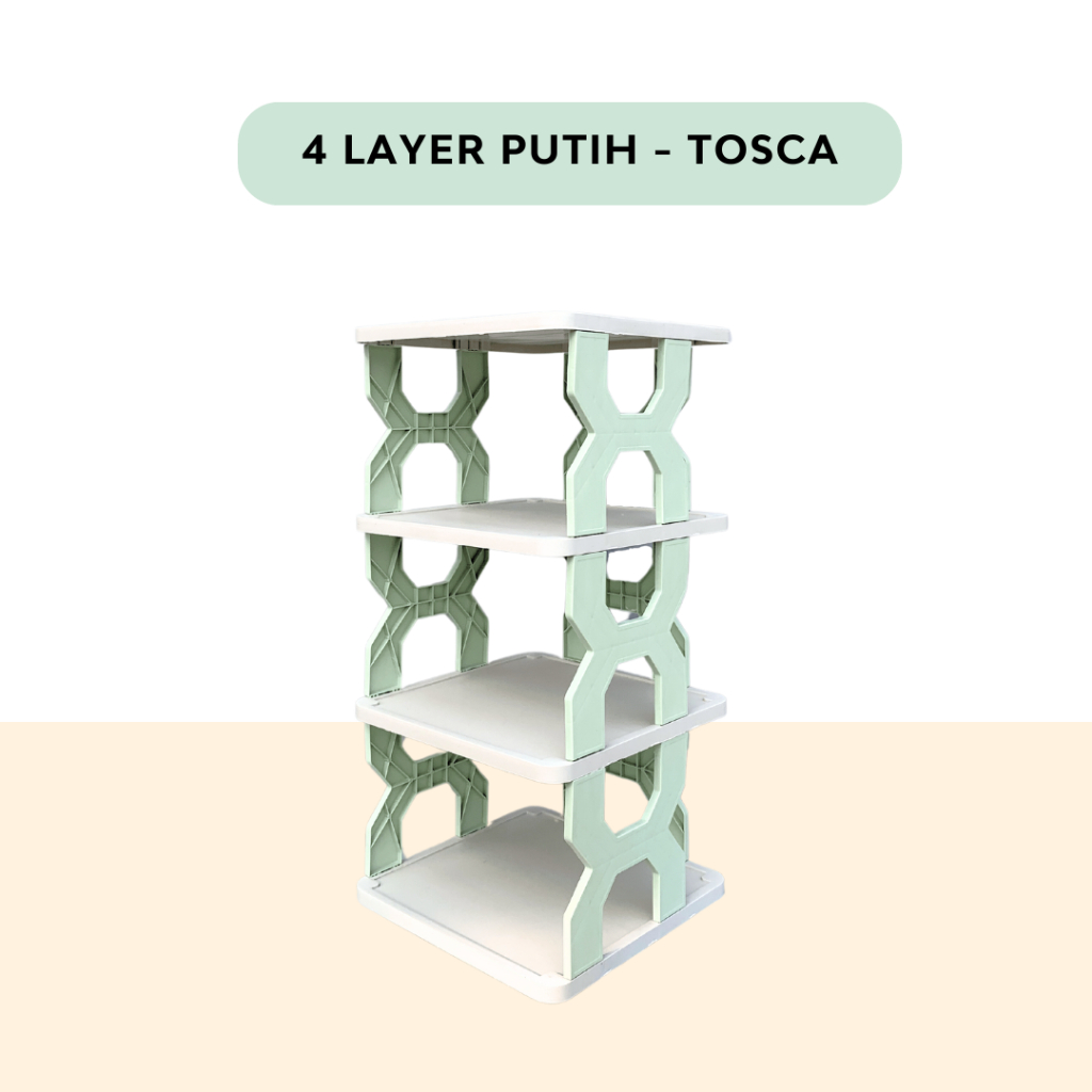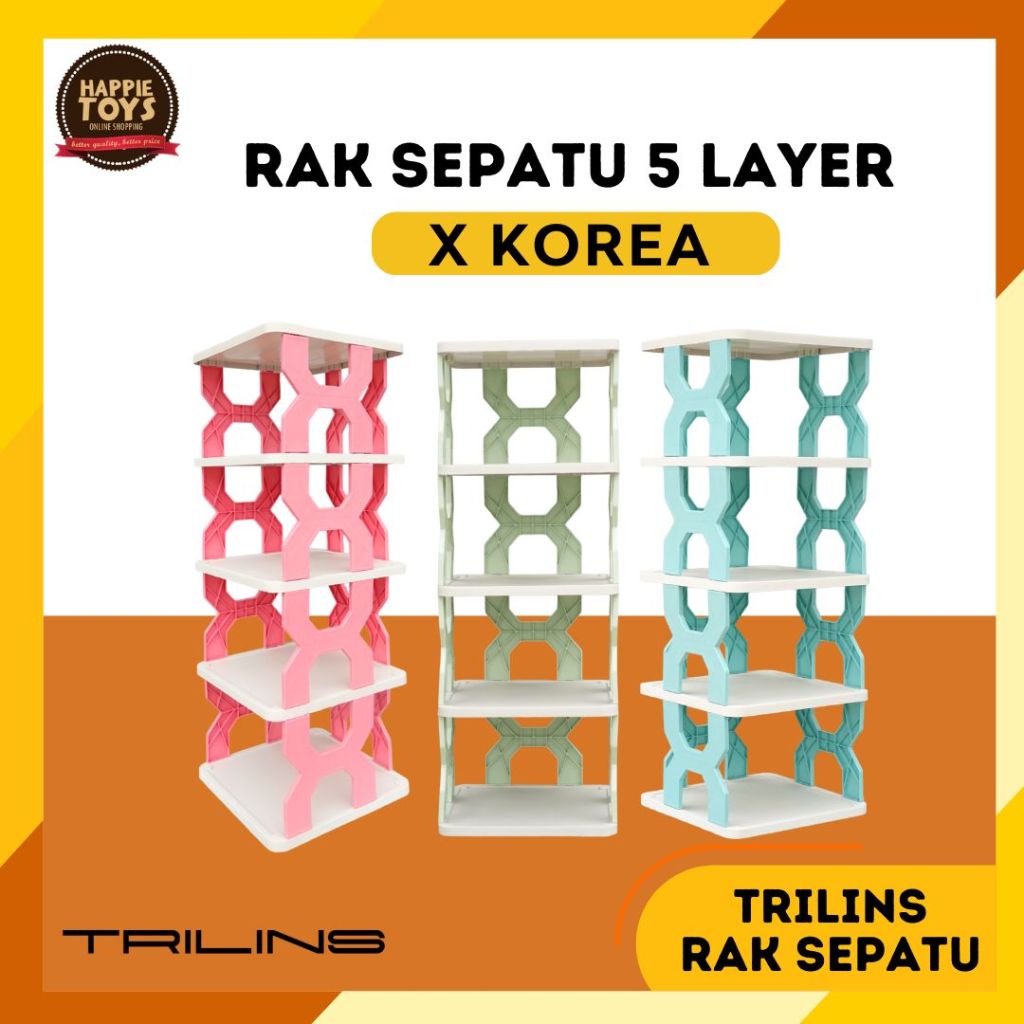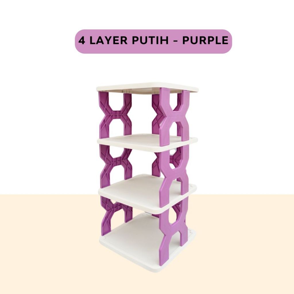 RAK SEPATU X KOREA Plastik Rak Penyimpanan sandal boneka zig zag 4 & 5 tingkat - TRILINS WHITE BASE